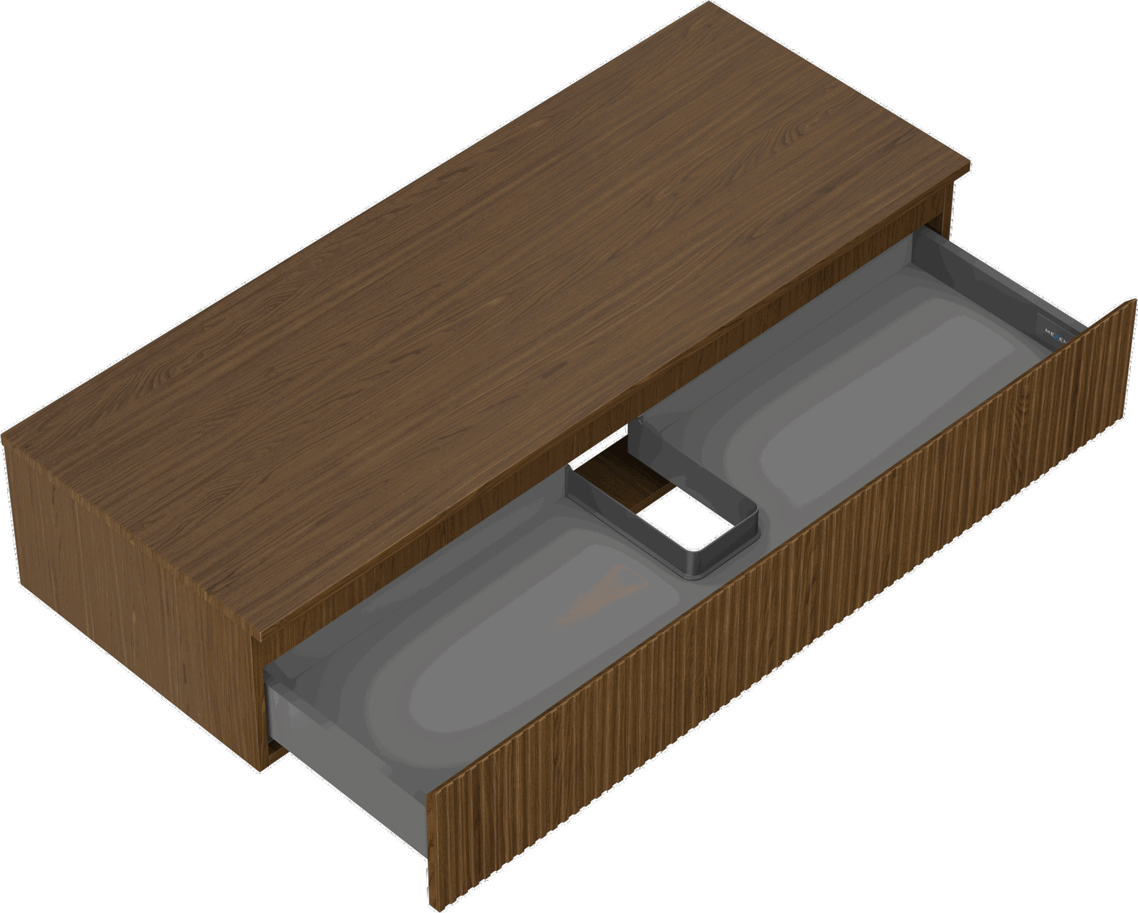 Výřez v zásuvce je navržen tak, aby pojmul sifon, který je nezbytný v instalacích umyvadlových. Díky tomu může být nábytek plně funkčně namontován, aniž by bylo nutné vzdát se prostoru v zásuvce ve prospěch instalace.