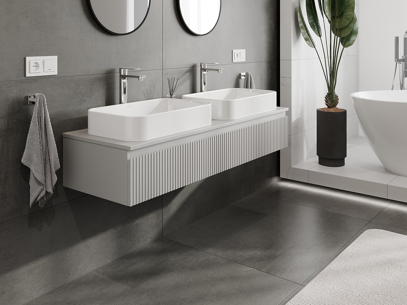 Díky pevným materiálům, preciznímu provedení a moderním technologickým řešením produkt zajišťuje pohodlí při používání, odolnost vůči vlhkosti a změnám teploty a také elegantní vzhled, který se hodí k různým stylům koupelen.