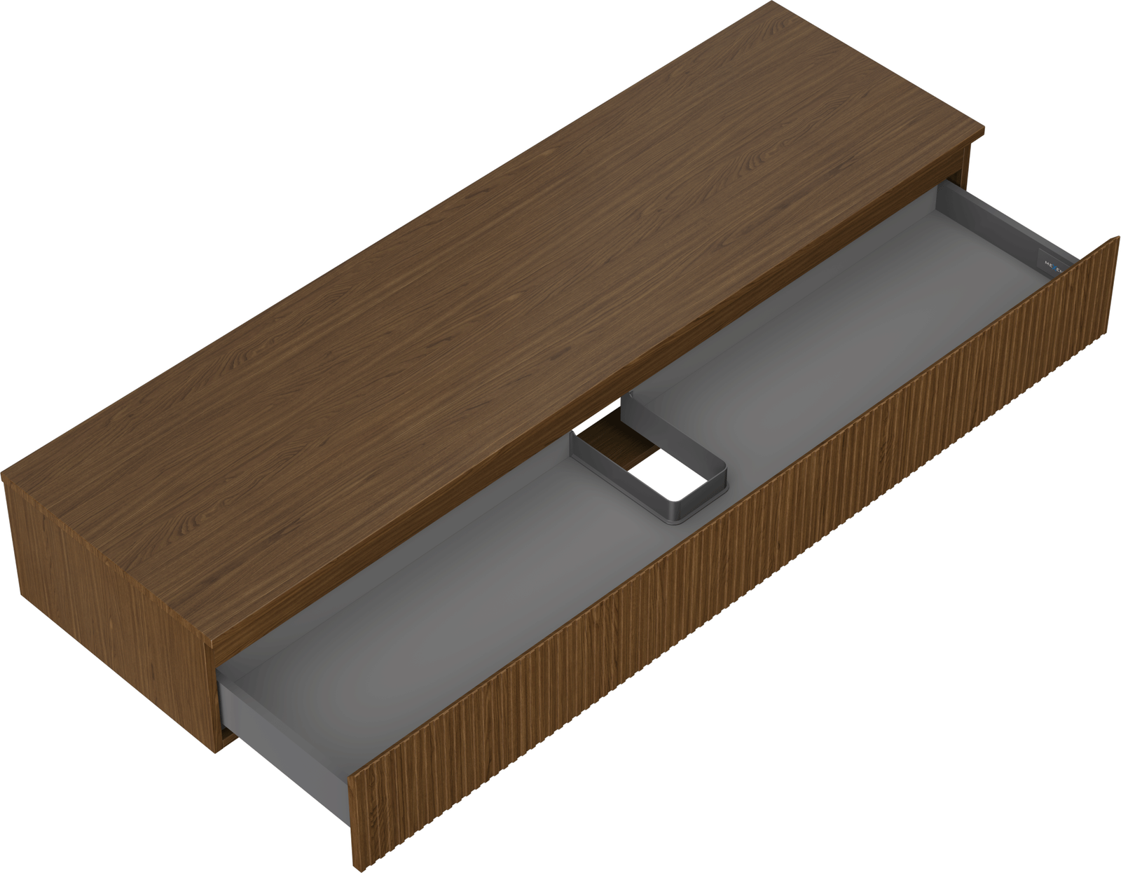 Výřez v zásuvce je navržen tak, aby pojmul sifon, který je nezbytný v instalacích umyvadlových. Díky tomu může být nábytek plně funkčně namontován, aniž by bylo nutné vzdát se prostoru v zásuvce ve prospěch instalace.