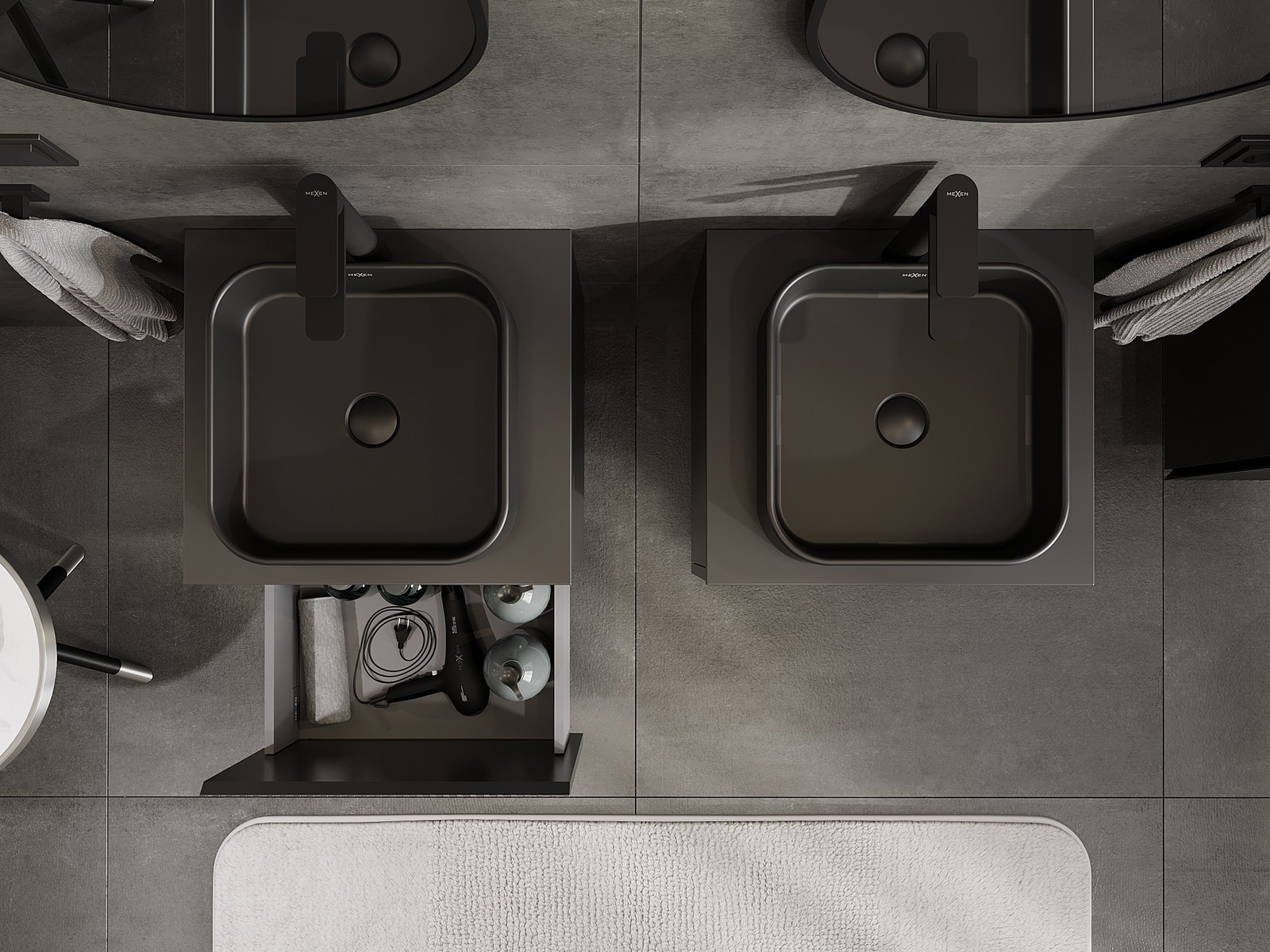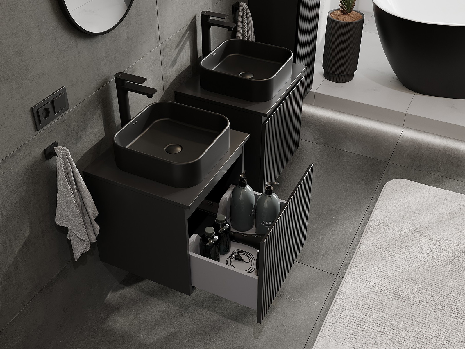 Mexen Rivel koupelnová skříňka pod umyvadlo 50 cm s deskou, 1 zásuvka, drážkovaná, černá mat - 91A20-05047-1-BFC71