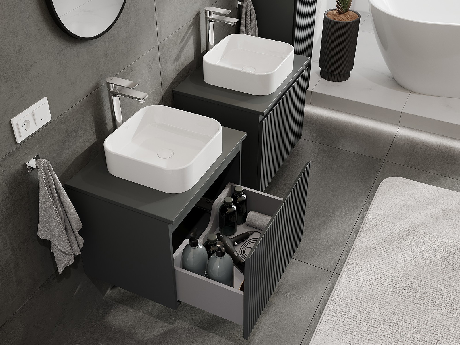 Korpus skříňky je dodáván zcela smontovaný, což znamená maximální pohodlí a úsporu času. Nemusíte ztrácet hodiny skládáním nábytku – stačí jej namontovat na vybrané místo v koupelně. Je to ideální řešení pro osoby, které si cení rychlé montáže a okamžitého efektu.