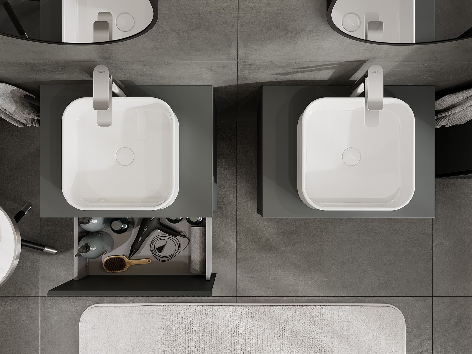 Naše modulární koupelnový nábytek lze kombinovat v různých barevných konfiguracích, což umožňuje plnou personalizaci. Můžete si vybrat jak vzhled, tak funkce jednotlivých prvků, což umožňuje přizpůsobit nábytek vašim stylovým a uživatelským preferencím.
