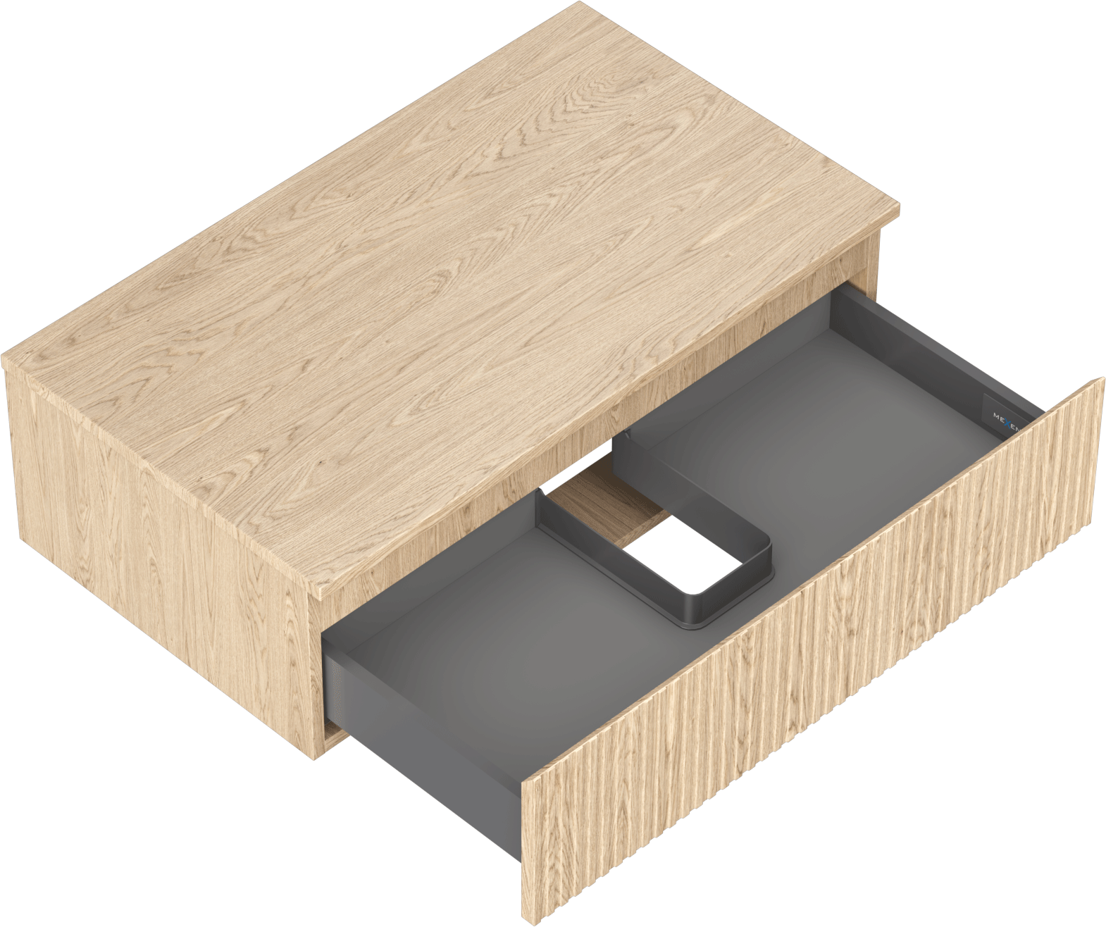 Výřez v zásuvce je navržen tak, aby pojmul sifon, který je nezbytný v instalacích umyvadlových. Díky tomu může být nábytek plně funkčně namontován, aniž by bylo nutné vzdát se prostoru v zásuvce ve prospěch instalace.