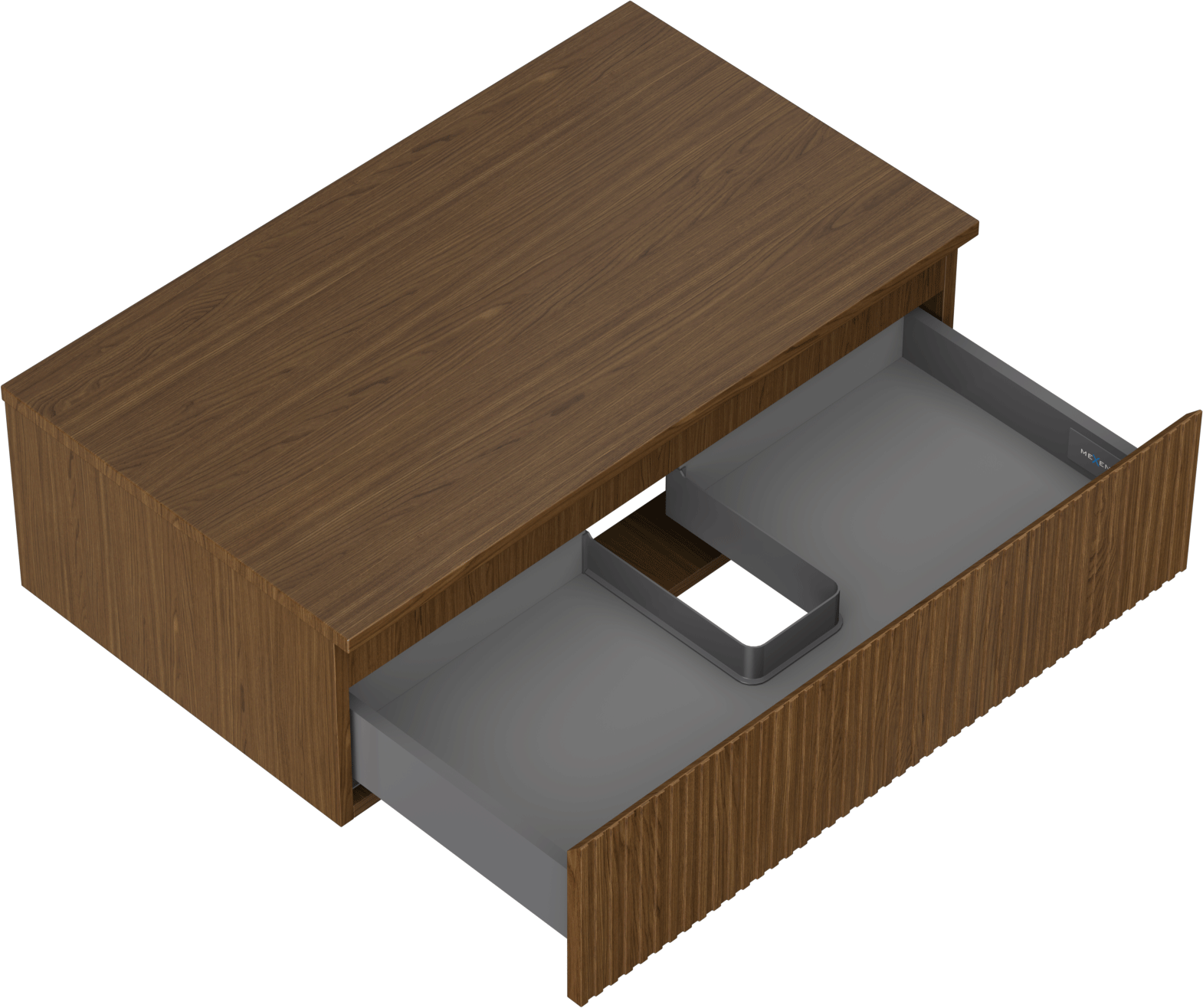 Výřez v zásuvce je navržen tak, aby pojmul sifon, který je nezbytný v instalacích umyvadlových. Díky tomu může být nábytek plně funkčně namontován, aniž by bylo nutné vzdát se prostoru v zásuvce ve prospěch instalace.