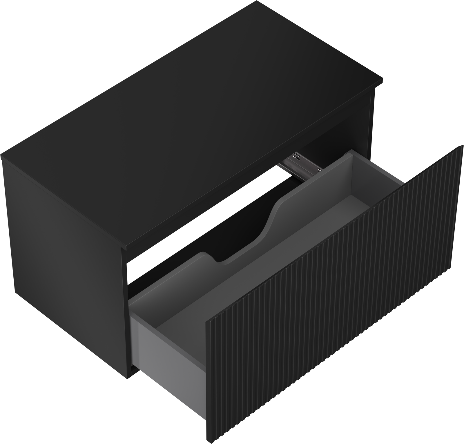 • Mexen Rivel koupelnová skříňka pod umyvadlo 90 cm s pracovní deskou, 1 zásuvka, drážkovaná, černá mat - 91A20-09047-1-BFC71