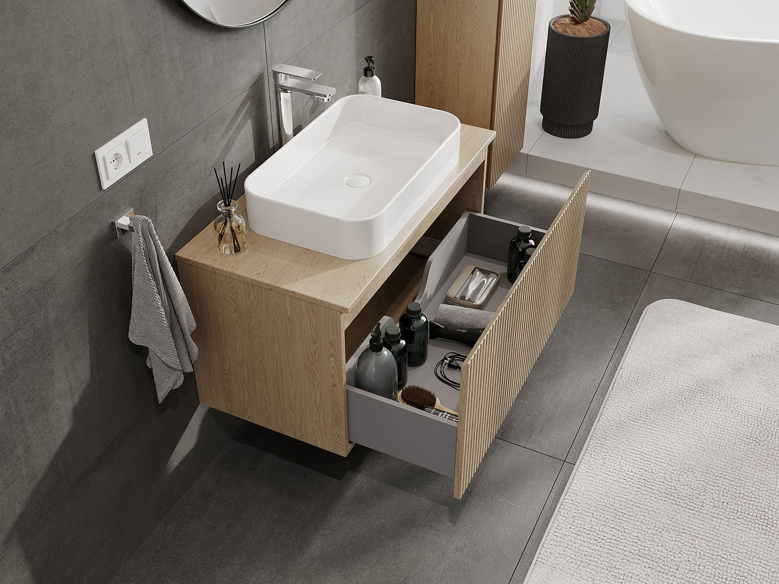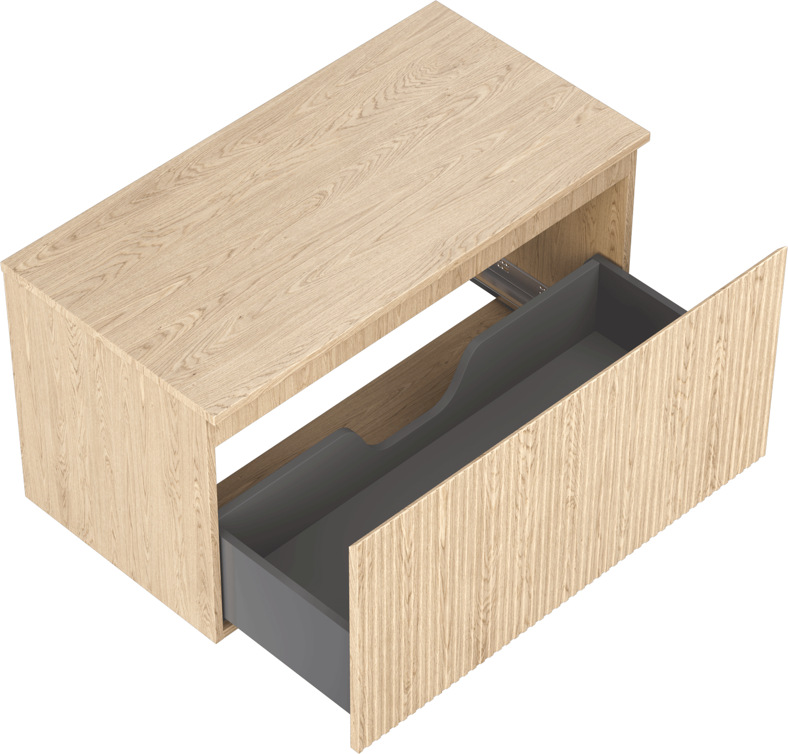 Výřez v zásuvce je navržen tak, aby pojmul sifon, který je nezbytný v instalacích umyvadlových. Díky tomu může být nábytek plně funkčně namontován, aniž by bylo nutné vzdát se prostoru v zásuvce ve prospěch instalace.