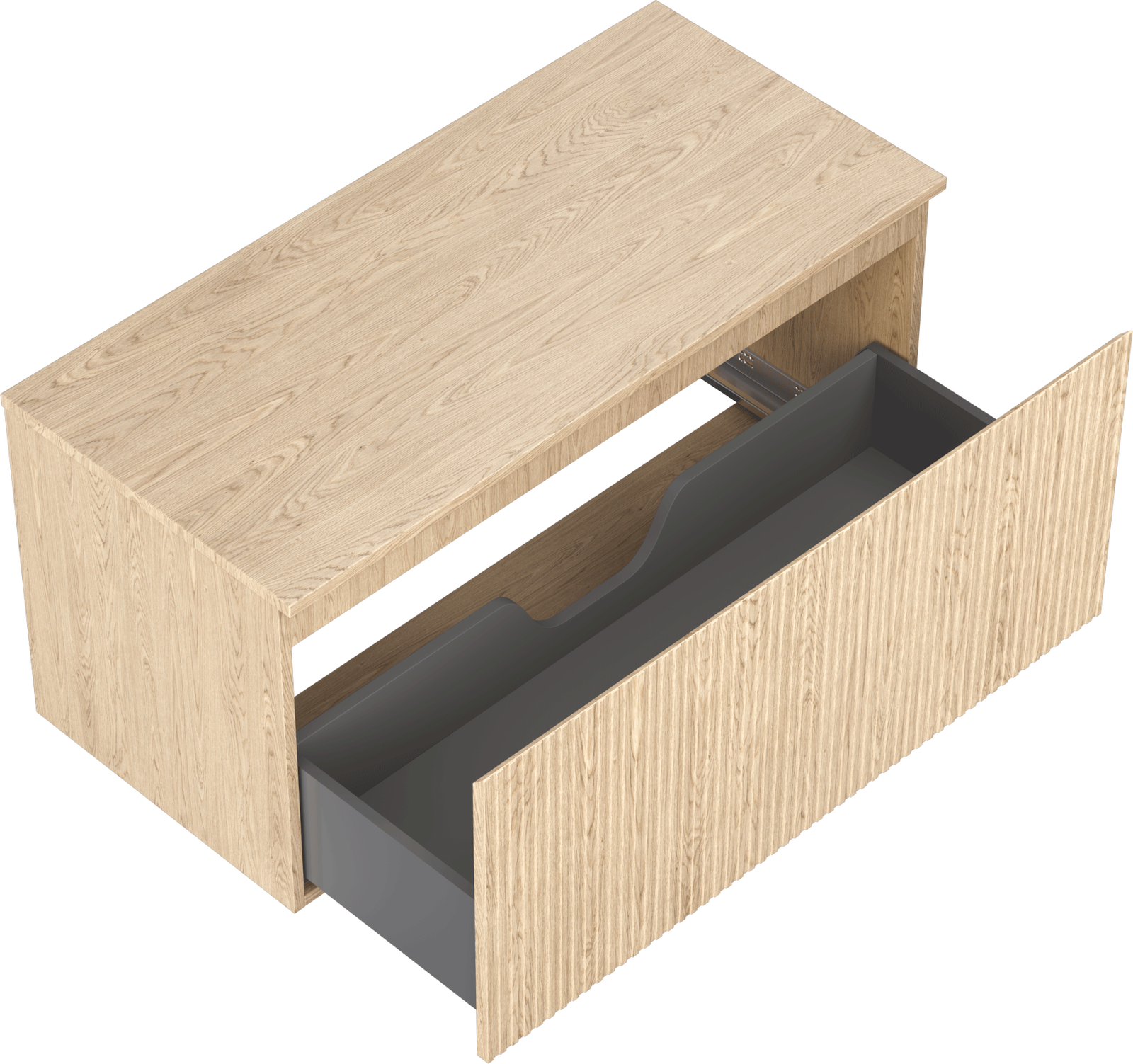 Výřez v zásuvce je navržen tak, aby pojmul sifon, který je nezbytný v instalacích umyvadlových. Díky tomu může být nábytek plně funkčně namontován, aniž by bylo nutné vzdát se prostoru v zásuvce ve prospěch instalace.
