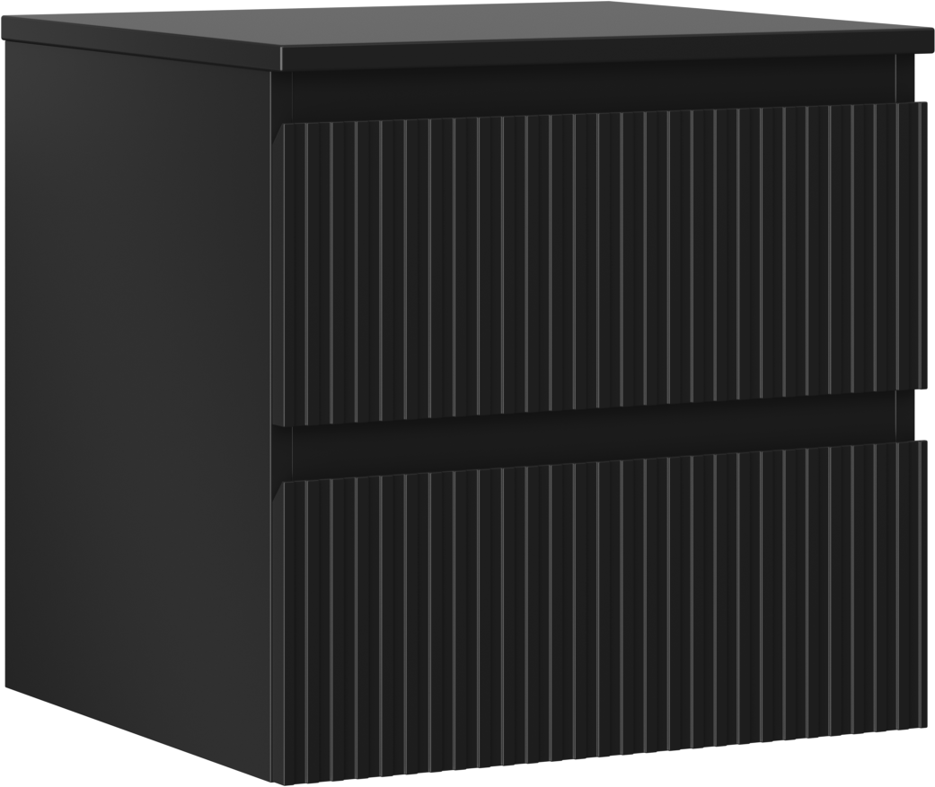Mexen Rivel koupelnová skříňka pod umyvadlo 50 cm s deskou, 2 zásuvky, drážkovaná, černá mat - 91A20-05047-2-BFFC71