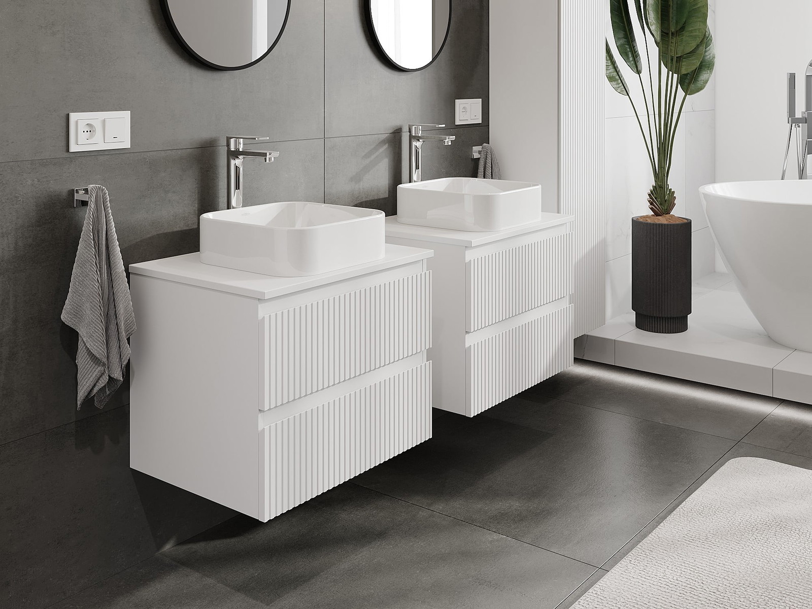 Naše modulární koupelnový nábytek lze kombinovat v různých barevných konfiguracích, což umožňuje plnou personalizaci. Můžete si vybrat jak vzhled, tak funkce jednotlivých prvků, což umožňuje přizpůsobit nábytek vašim stylovým a uživatelským preferencím.