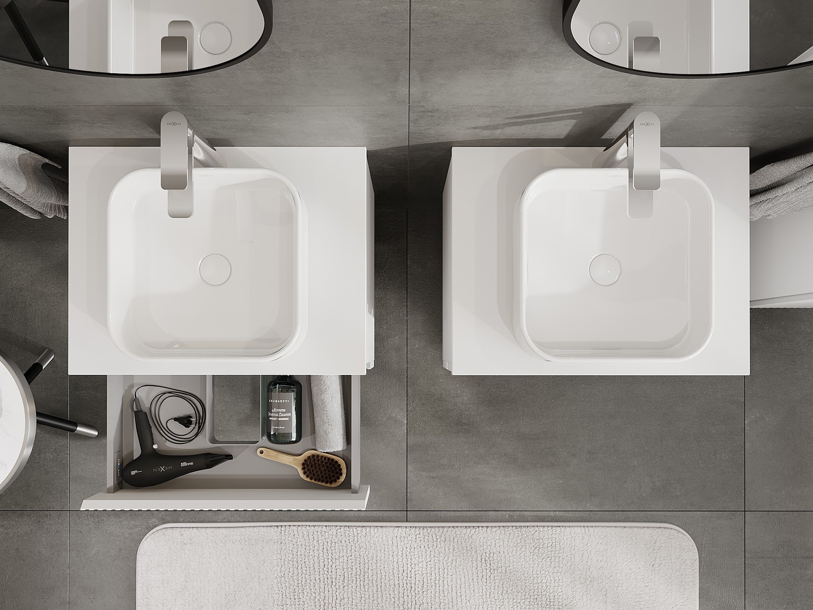 Výřez v zásuvce je navržen tak, aby pojmul sifon, který je nezbytný v instalacích umyvadlových. Díky tomu může být nábytek plně funkčně namontován, aniž by bylo nutné vzdát se prostoru v zásuvce ve prospěch instalace.