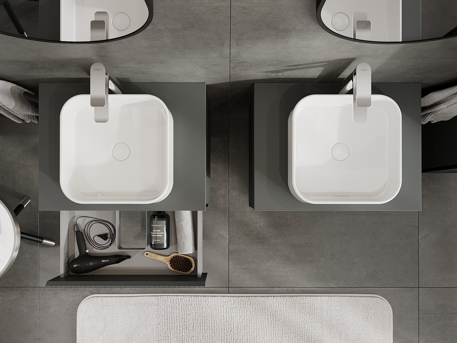 Výřez v zásuvce je navržen tak, aby pojmul sifon, který je nezbytný v instalacích umyvadlových. Díky tomu může být nábytek plně funkčně namontován, aniž by bylo nutné vzdát se prostoru v zásuvce ve prospěch instalace.