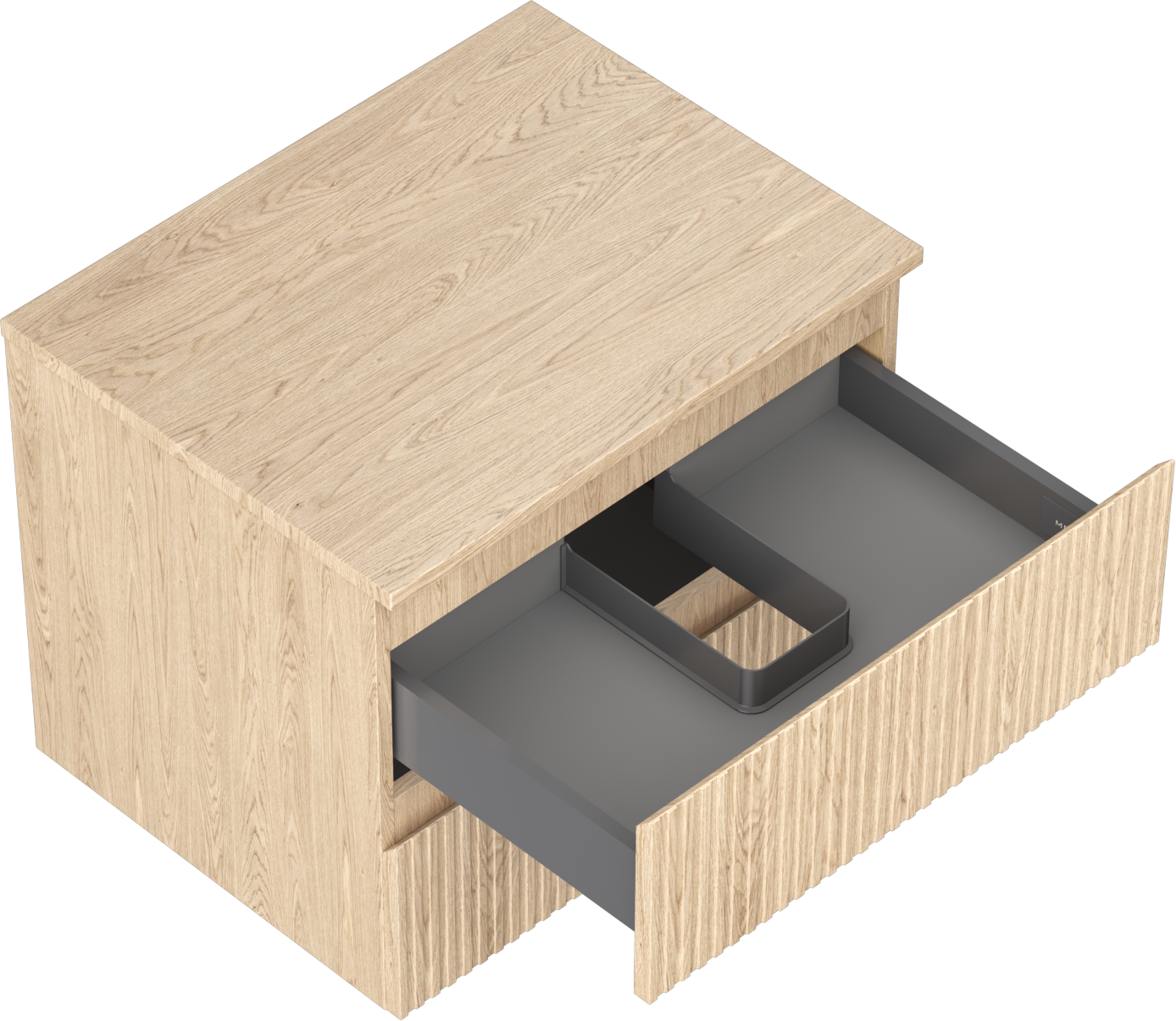 Výřez v zásuvce je navržen tak, aby pojmul sifon, který je nezbytný v instalacích umyvadlových. Díky tomu může být nábytek plně funkčně namontován, aniž by bylo nutné vzdát se prostoru v zásuvce ve prospěch instalace.