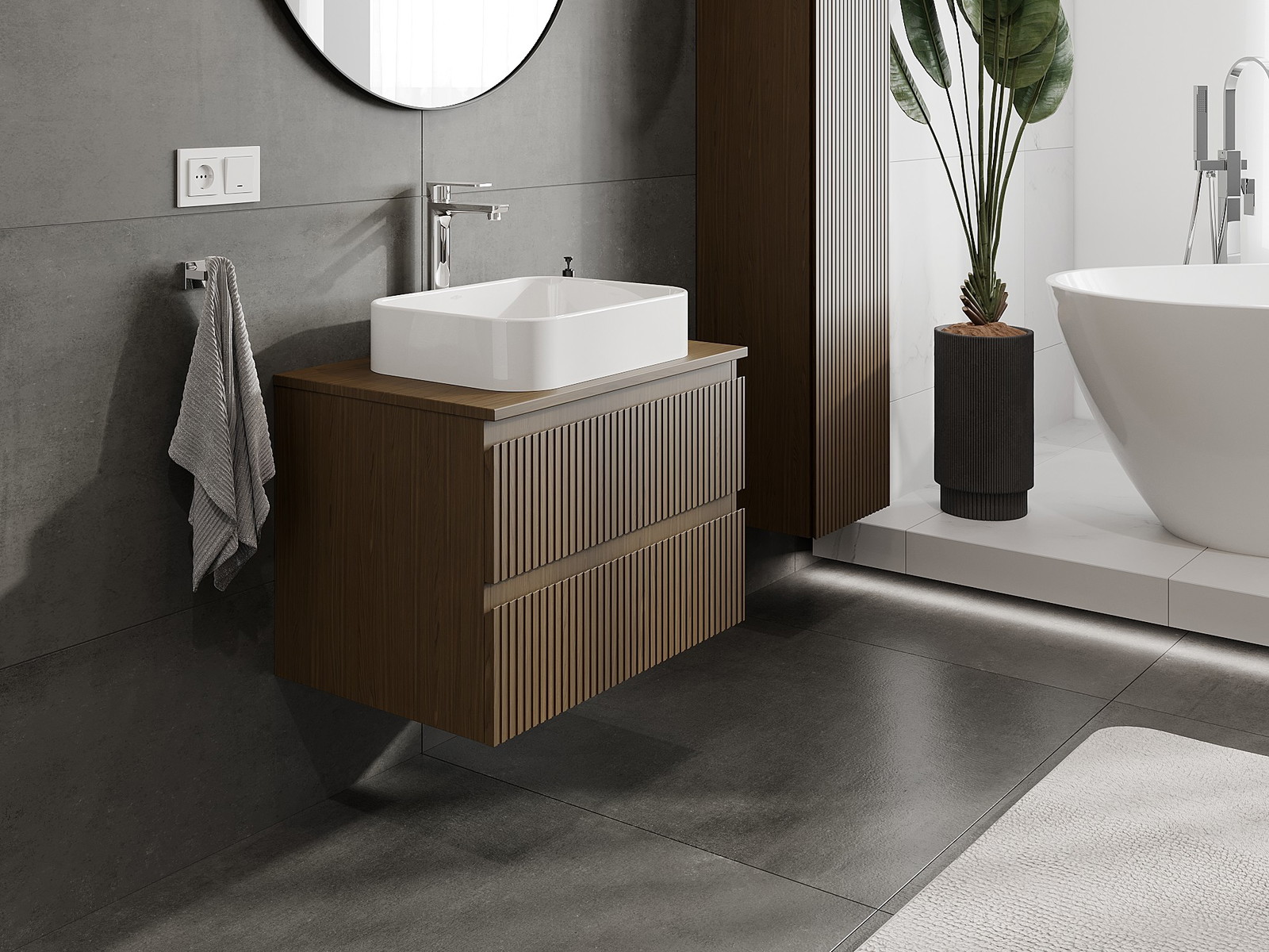 Naše modulární koupelnový nábytek lze kombinovat v různých barevných konfiguracích, což umožňuje plnou personalizaci. Můžete si vybrat jak vzhled, tak funkce jednotlivých prvků, což umožňuje přizpůsobit nábytek vašim stylovým a uživatelským preferencím.
