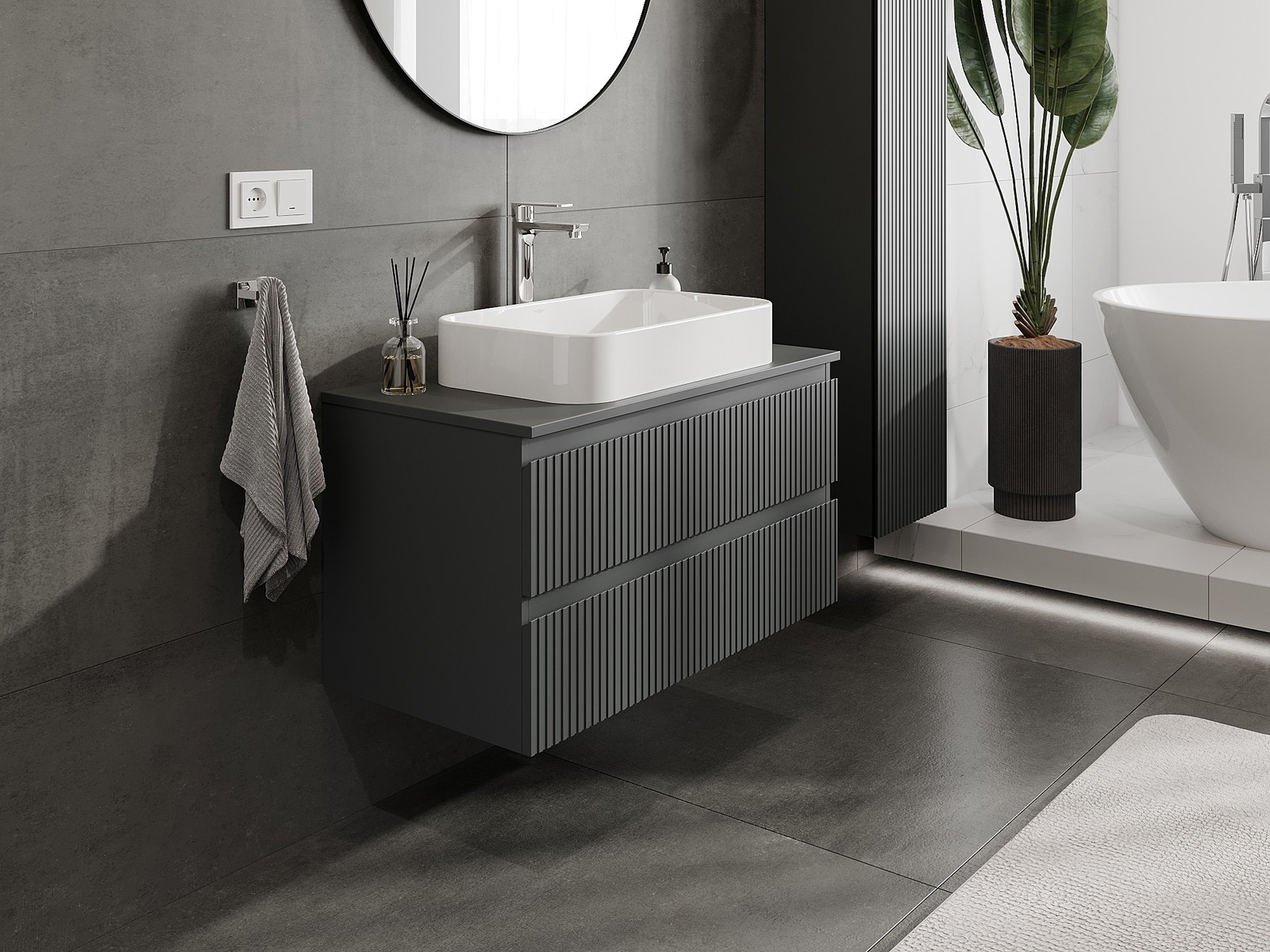 Naše modulární koupelnový nábytek lze kombinovat v různých barevných konfiguracích, což umožňuje plnou personalizaci. Můžete si vybrat jak vzhled, tak funkce jednotlivých prvků, což umožňuje přizpůsobit nábytek vašim stylovým a uživatelským preferencím.