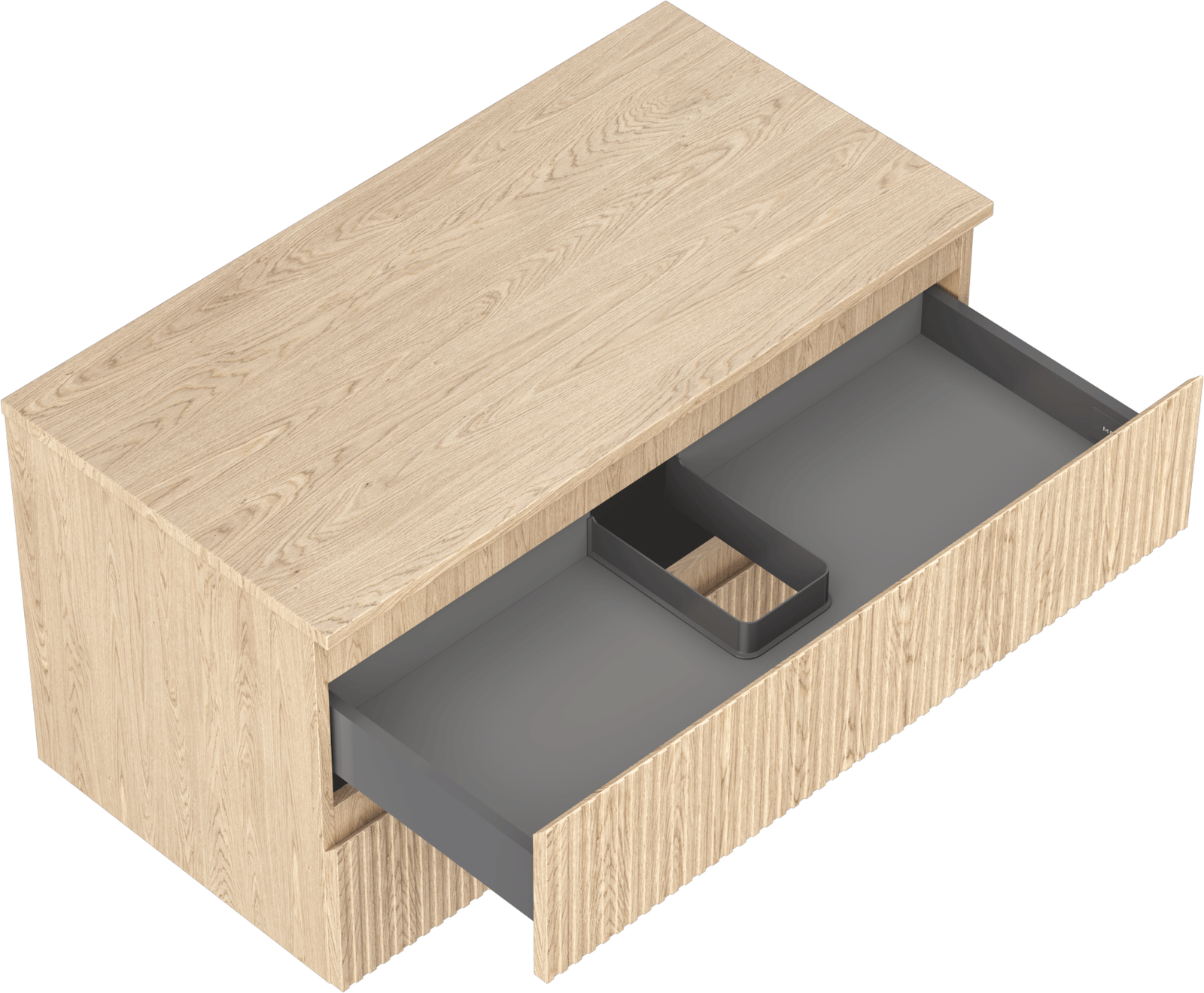 Výřez v zásuvce je navržen tak, aby pojmul sifon, který je nezbytný v instalacích umyvadlových. Díky tomu může být nábytek plně funkčně namontován, aniž by bylo nutné vzdát se prostoru v zásuvce ve prospěch instalace.