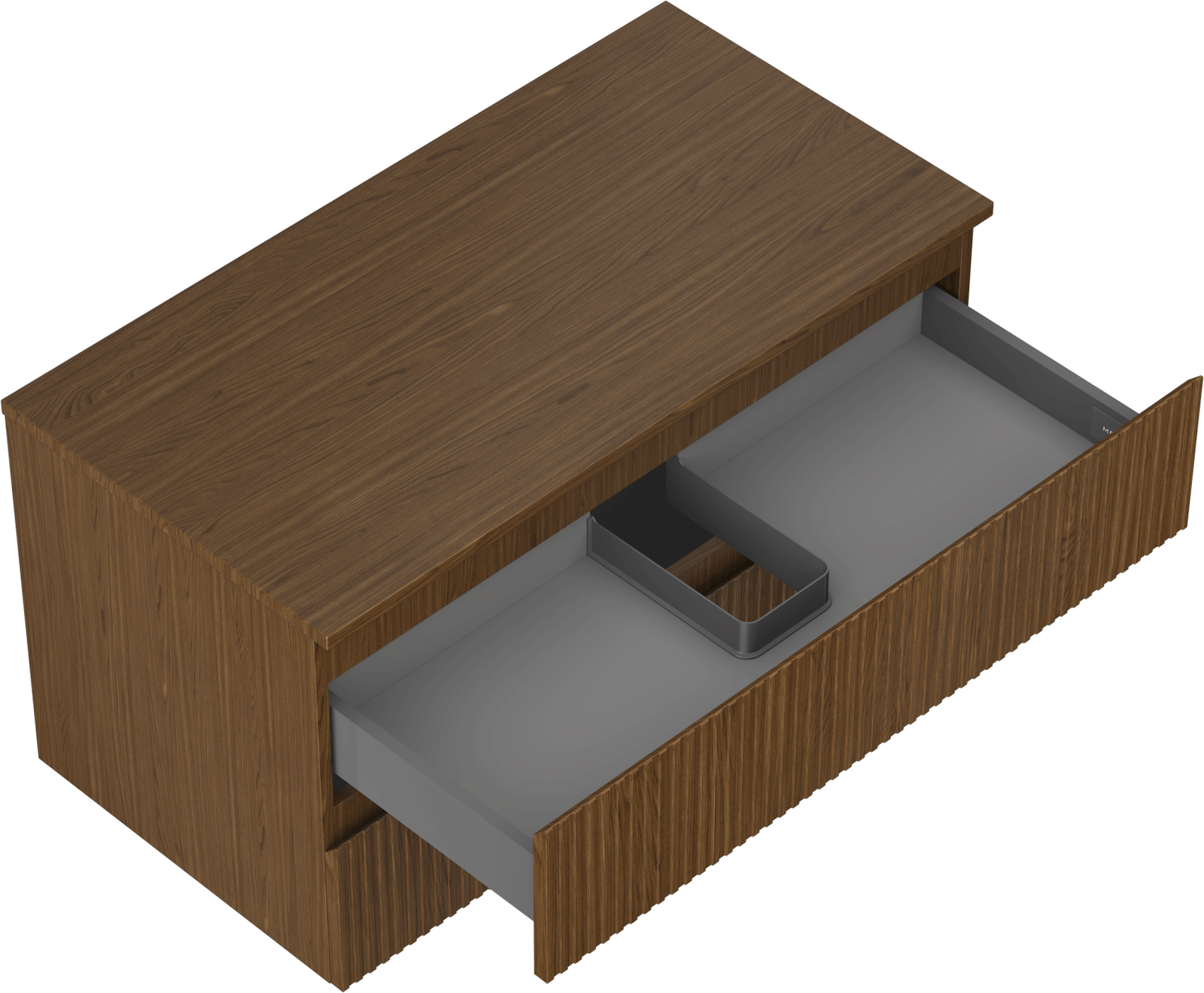 Výřez v zásuvce je navržen tak, aby pojmul sifon, který je nezbytný v instalacích umyvadlových. Díky tomu může být nábytek plně funkčně namontován, aniž by bylo nutné vzdát se prostoru v zásuvce ve prospěch instalace.