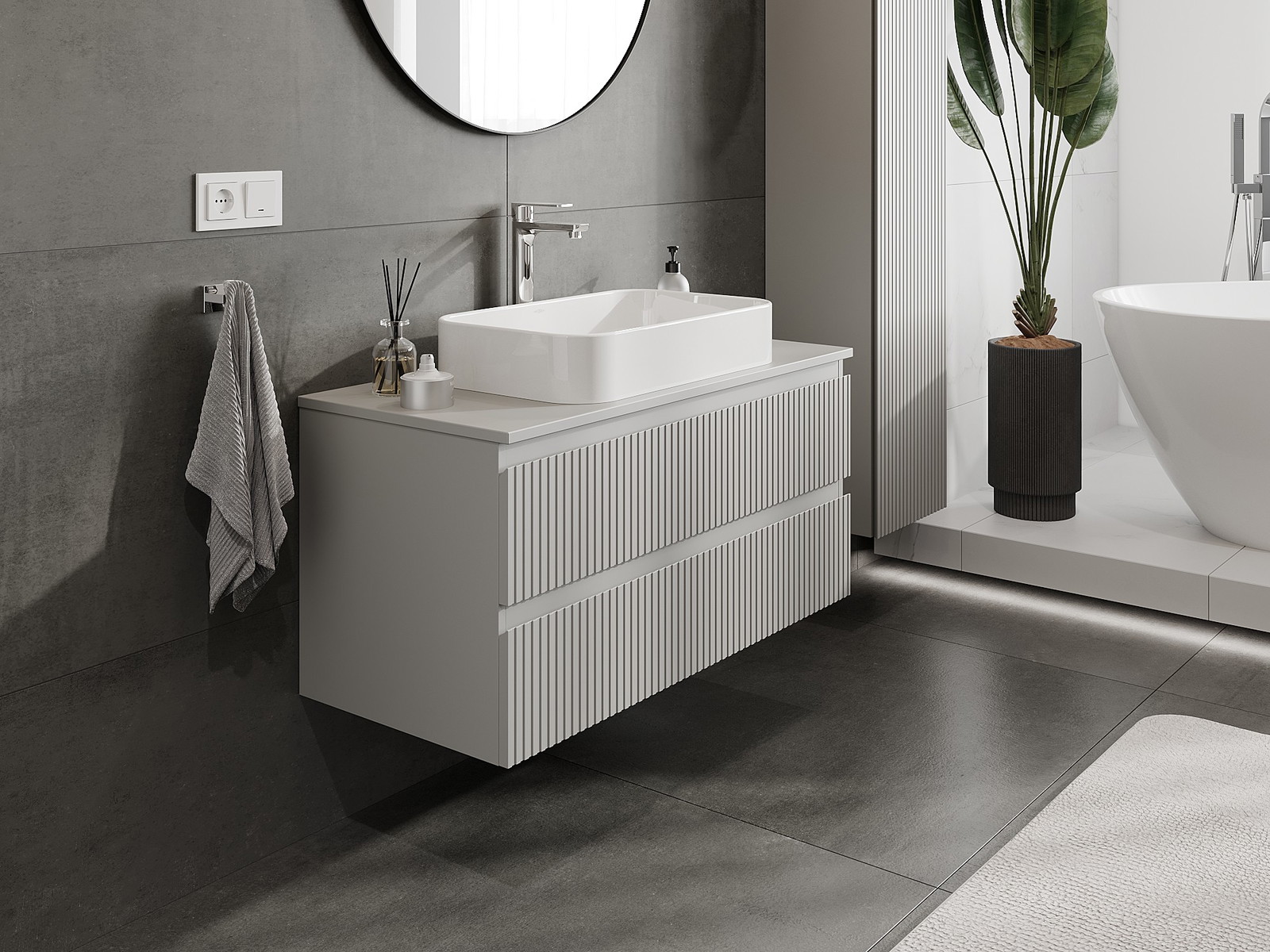 Naše modulární koupelnový nábytek lze kombinovat v různých barevných konfiguracích, což umožňuje plnou personalizaci. Můžete si vybrat jak vzhled, tak funkce jednotlivých prvků, což umožňuje přizpůsobit nábytek vašim stylovým a uživatelským preferencím.