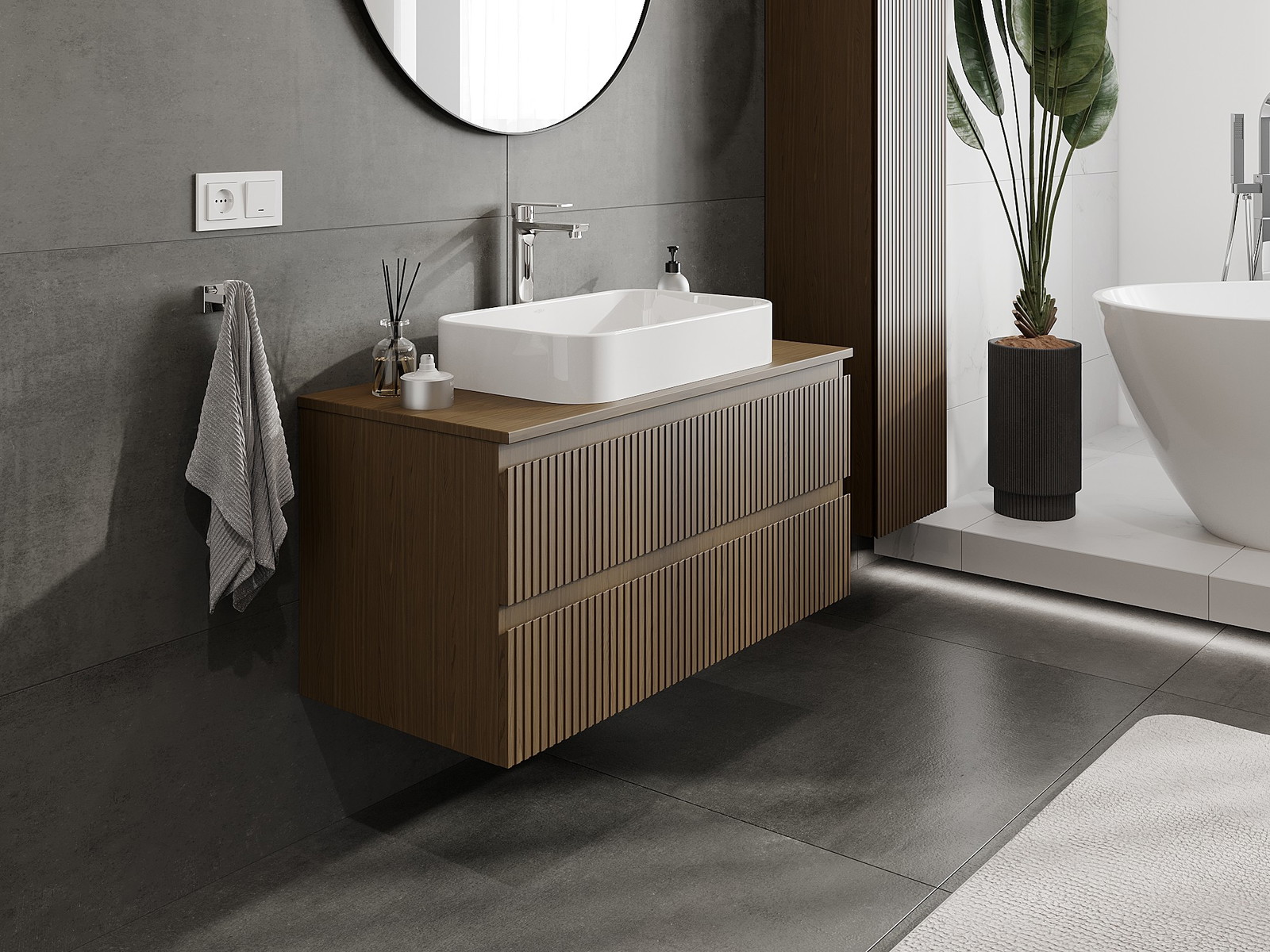 Naše modulární koupelnový nábytek lze kombinovat v různých barevných konfiguracích, což umožňuje plnou personalizaci. Můžete si vybrat jak vzhled, tak funkce jednotlivých prvků, což umožňuje přizpůsobit nábytek vašim stylovým a uživatelským preferencím.