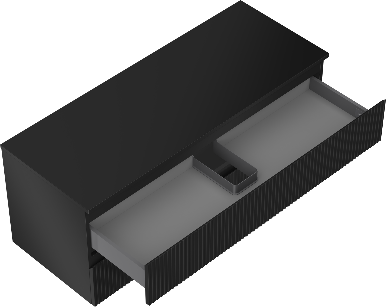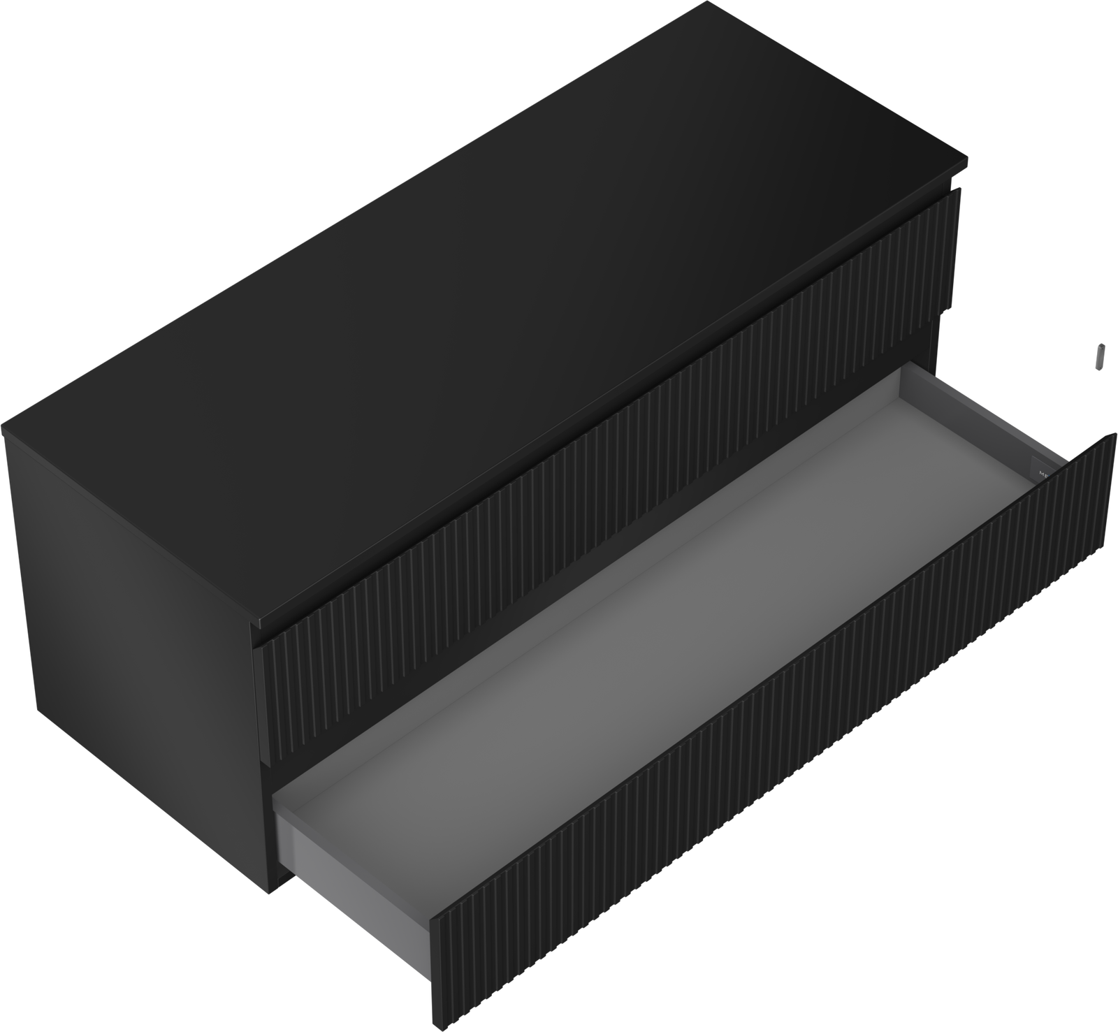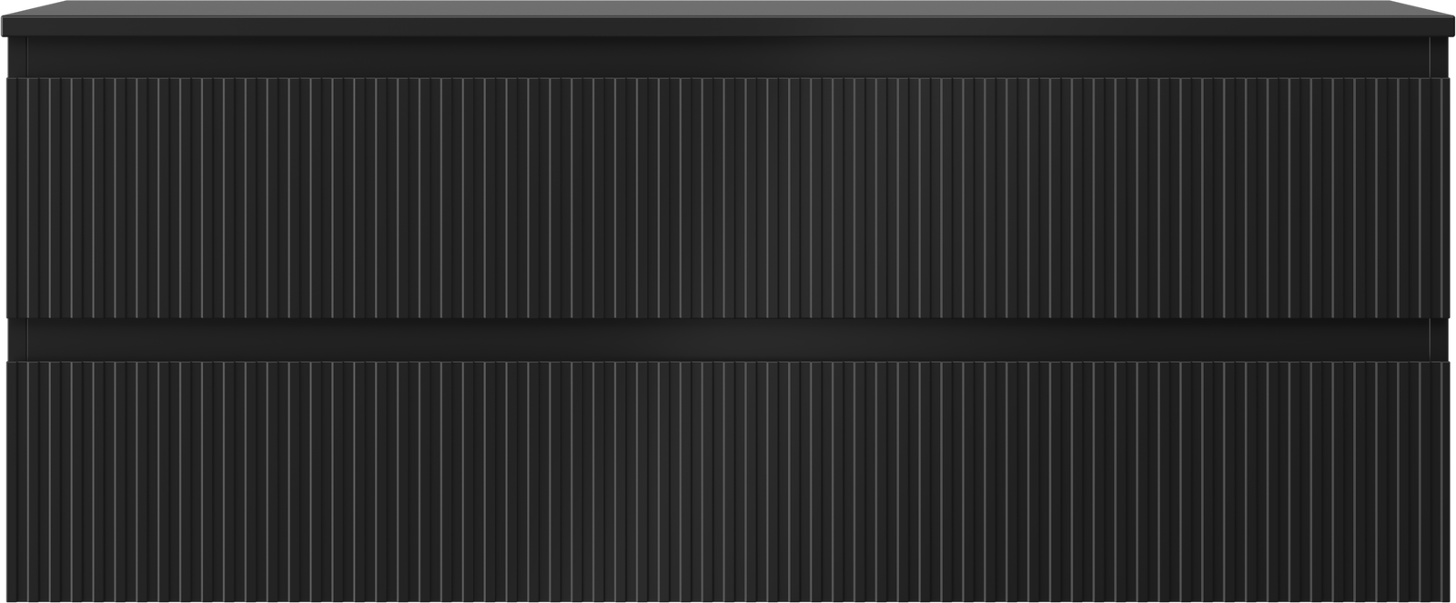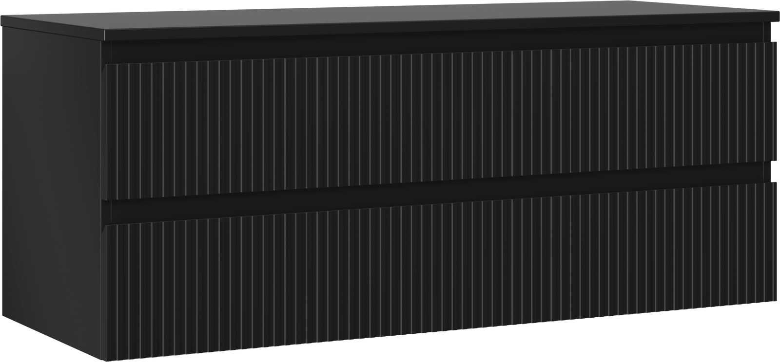 Mexen Rivel koupelnová skříňka pod umyvadlo 120 cm s deskou, 2 zásuvky, drážkovaná, černá matová - 91A20-12047-2-BFFC71