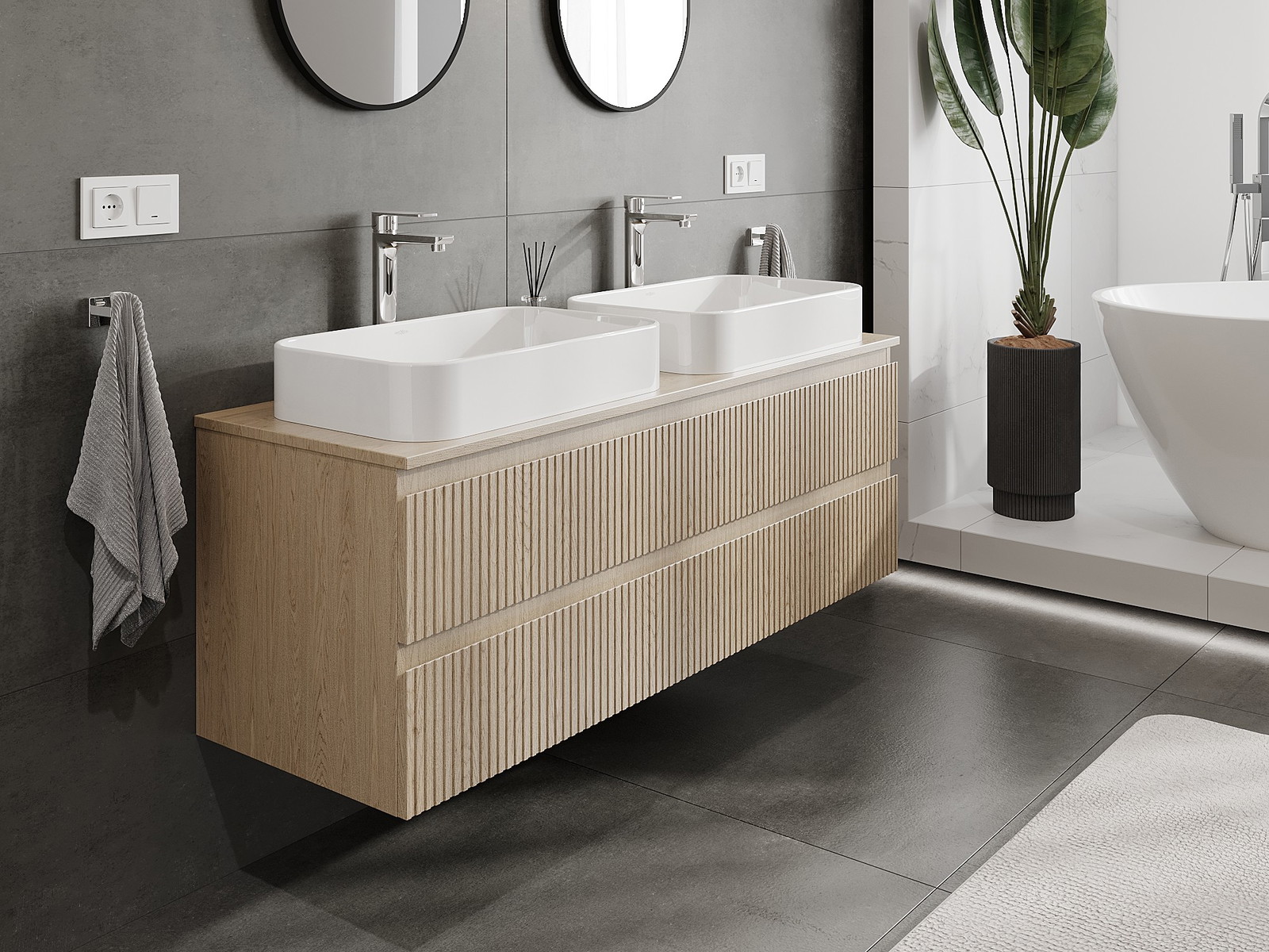 Naše modulární koupelnový nábytek lze kombinovat v různých barevných konfiguracích, což umožňuje plnou personalizaci. Můžete si vybrat jak vzhled, tak funkce jednotlivých prvků, což umožňuje přizpůsobit nábytek vašim stylovým a uživatelským preferencím.