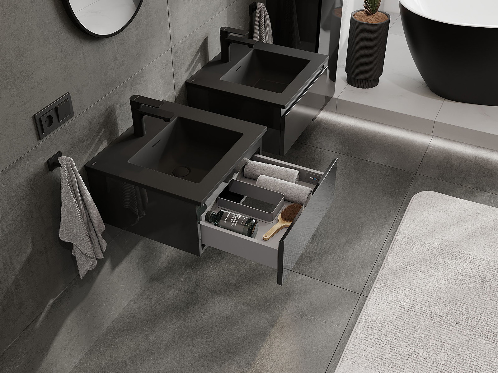 Mexen Orio koupelnová skříňka 50 cm s umyvadlem Otis, 1 zásuvka, černý lesk/černý mat - 91A10-05023-1-BF70-W18M71