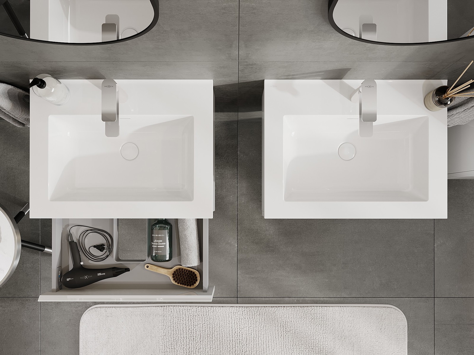 Výřez v zásuvce je navržen tak, aby pojmul sifon, který je nezbytný v instalacích umyvadlových. Díky tomu může být nábytek plně funkčně namontován, aniž by bylo nutné vzdát se prostoru v zásuvce ve prospěch instalace.
