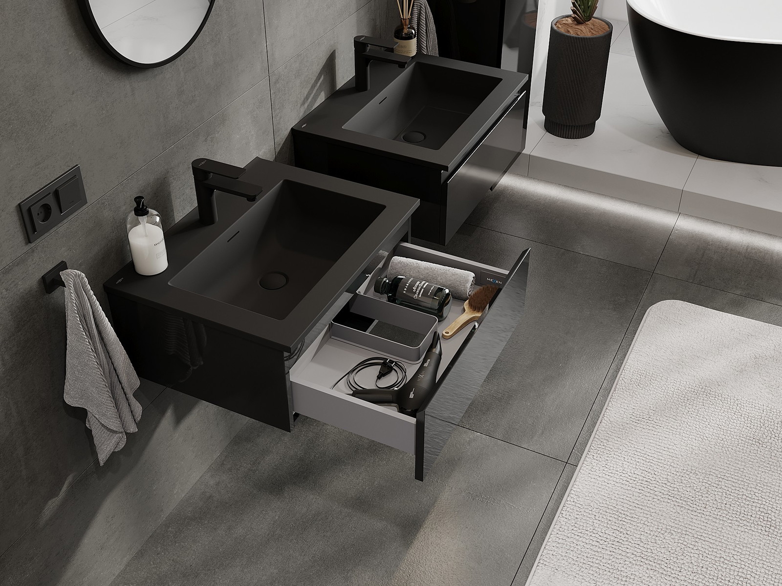 Výřez v zásuvce je navržen tak, aby pojmul sifon, který je nezbytný v instalacích umyvadlových. Díky tomu může být nábytek plně funkčně namontován, aniž by bylo nutné vzdát se prostoru v zásuvce ve prospěch instalace.