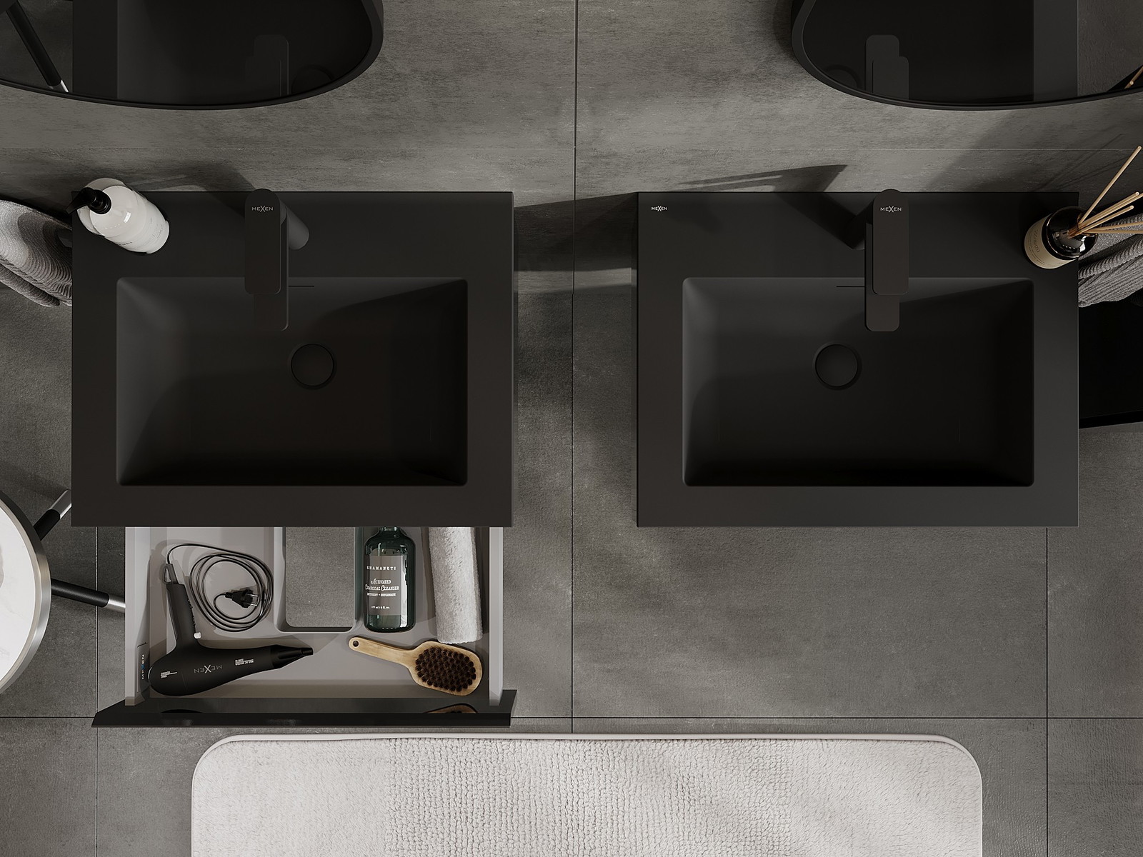 Mexen Orio koupelnová skříňka 60 cm s umyvadlem Otis, 1 zásuvka, černá lesk/černá mat - 91A10-06023-1-BF70-W18M71