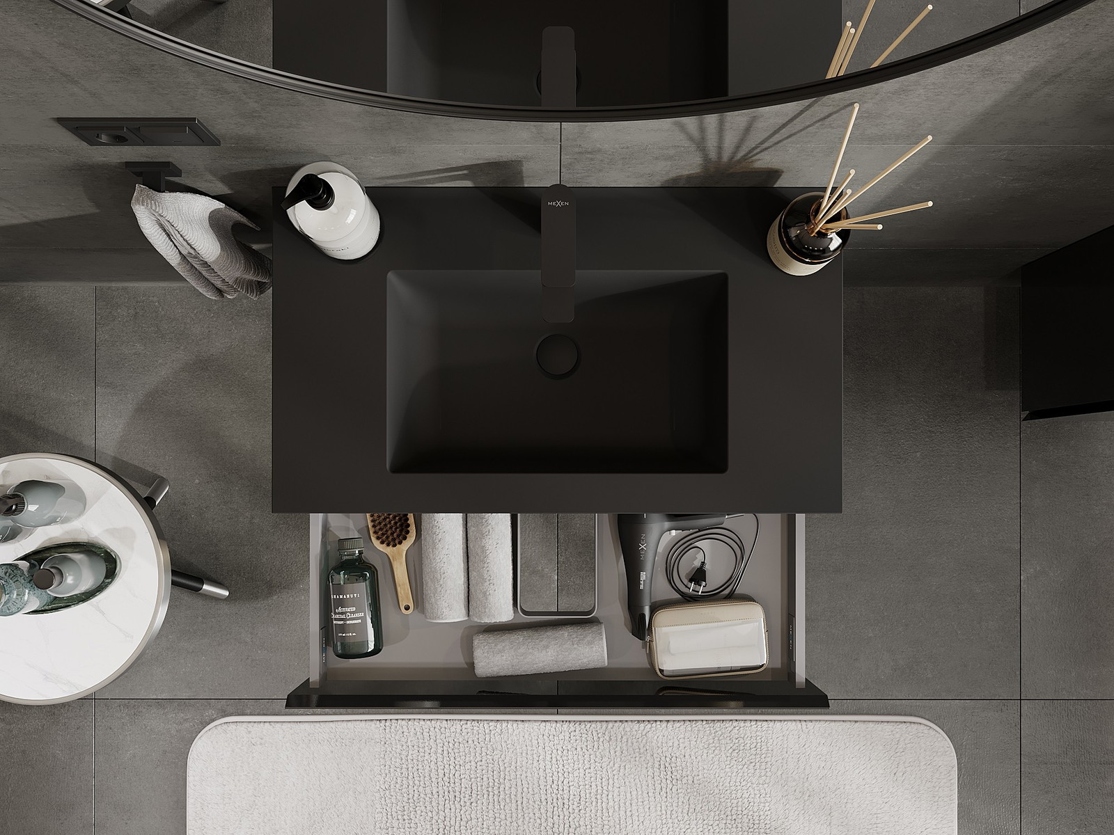 Mexen Orio koupelnová skříňka 80 cm s umyvadlem Otis, 1 zásuvka, černý lesk/černý mat - 91A10-08023-1-BF70-W18M71