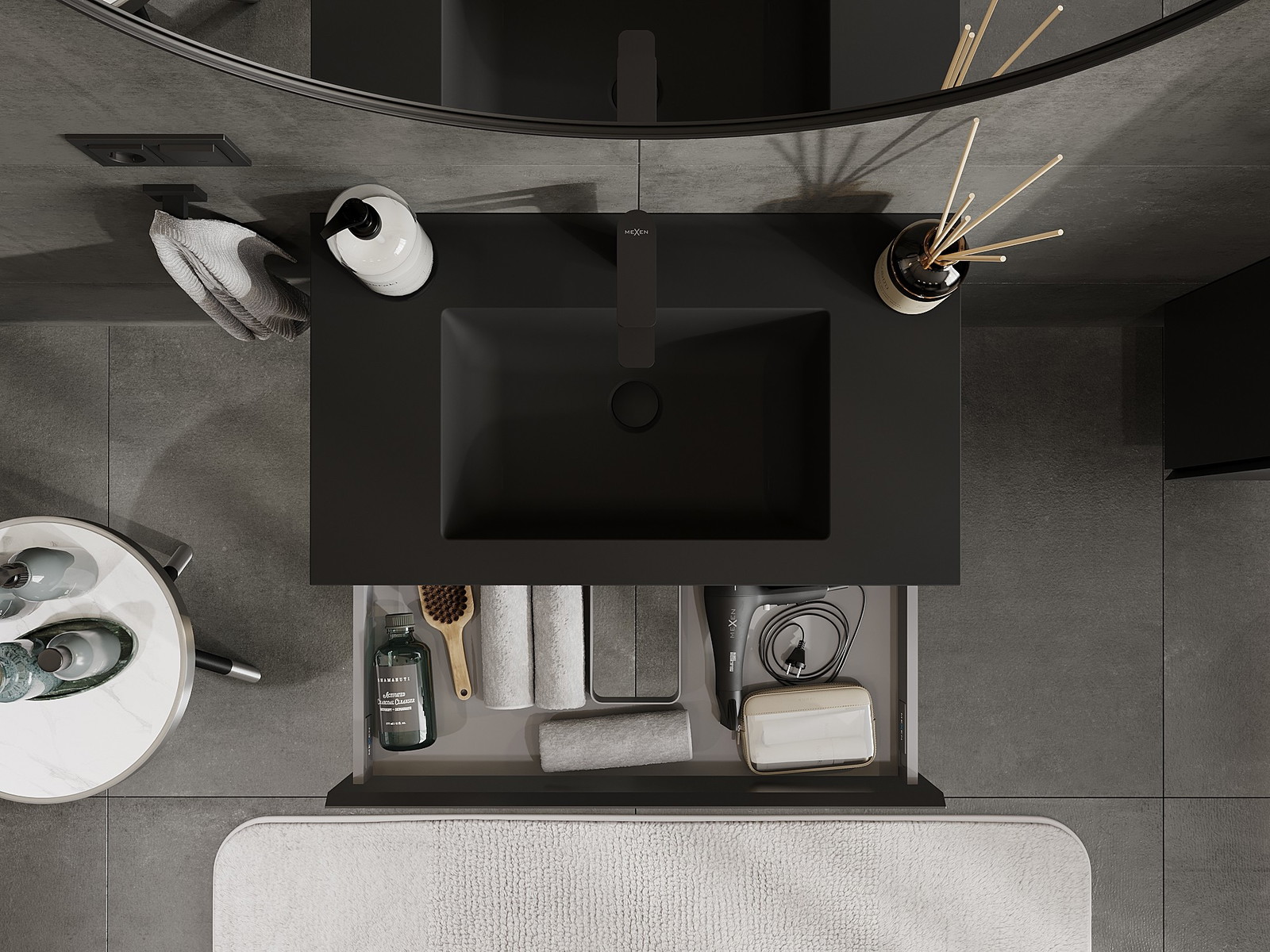 Mexen Orio koupelnová skříňka 80 cm s umyvadlem Otis, 1 zásuvka, černá matná - 91A10-08023-1-BF71-W18M71