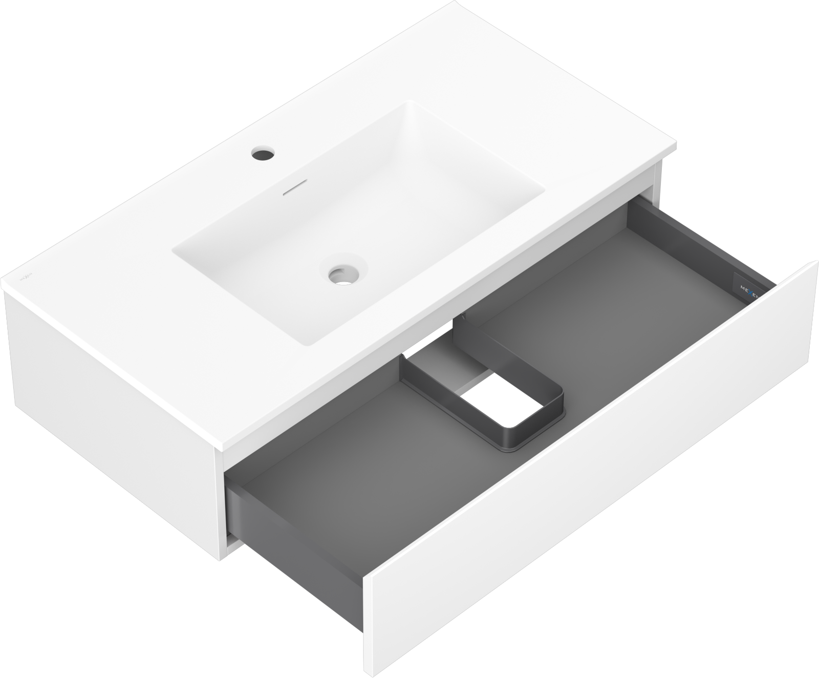 Výřez v zásuvce je navržen tak, aby pojmul sifon, který je nezbytný v instalacích umyvadlových. Díky tomu může být nábytek plně funkčně namontován, aniž by bylo nutné vzdát se prostoru v zásuvce ve prospěch instalace.