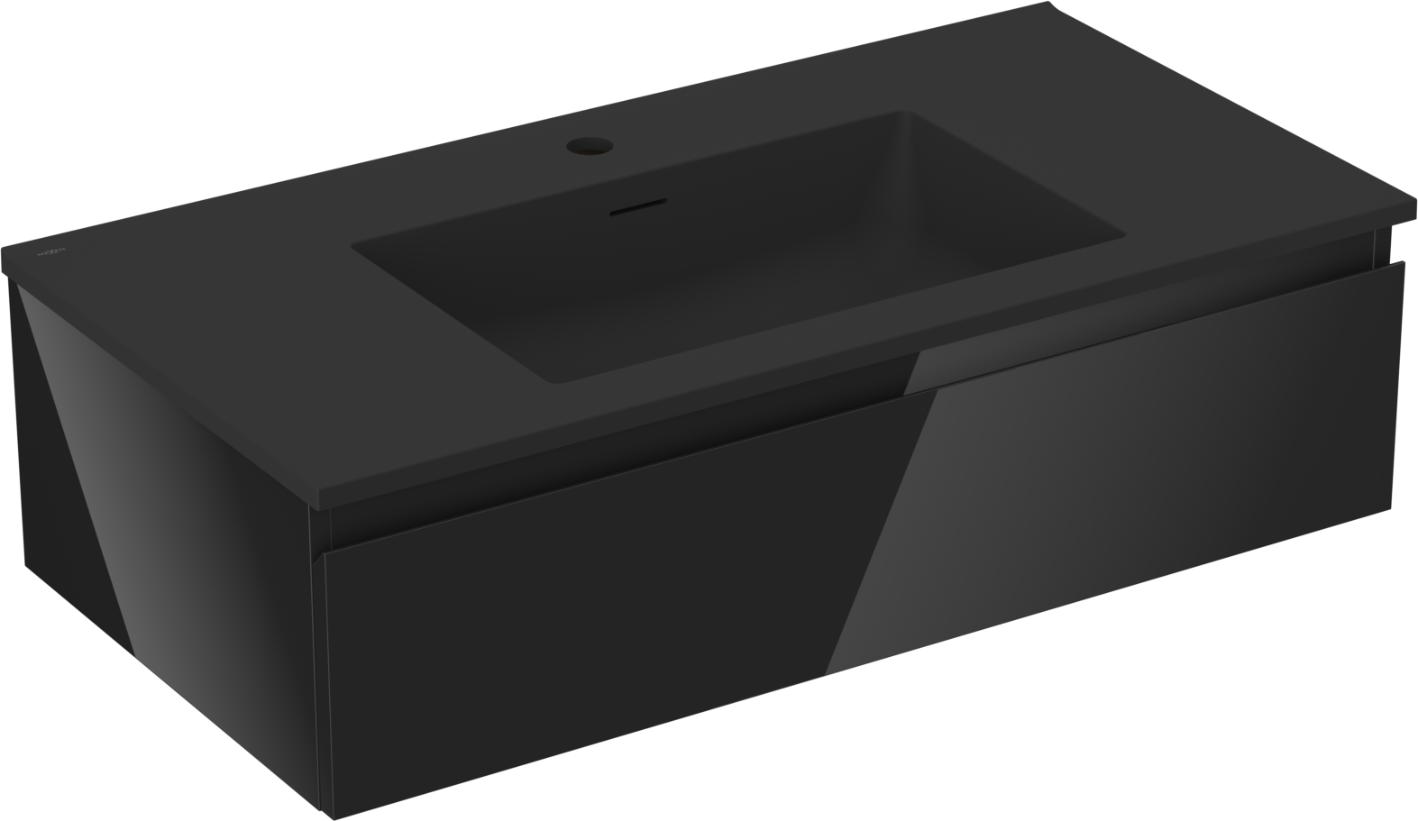 Mexen Orio koupelnová skříňka 90 cm s umyvadlem Otis, 1 zásuvka, černý lesk/černý mat - 91A10-09023-1-BF70-W18M71