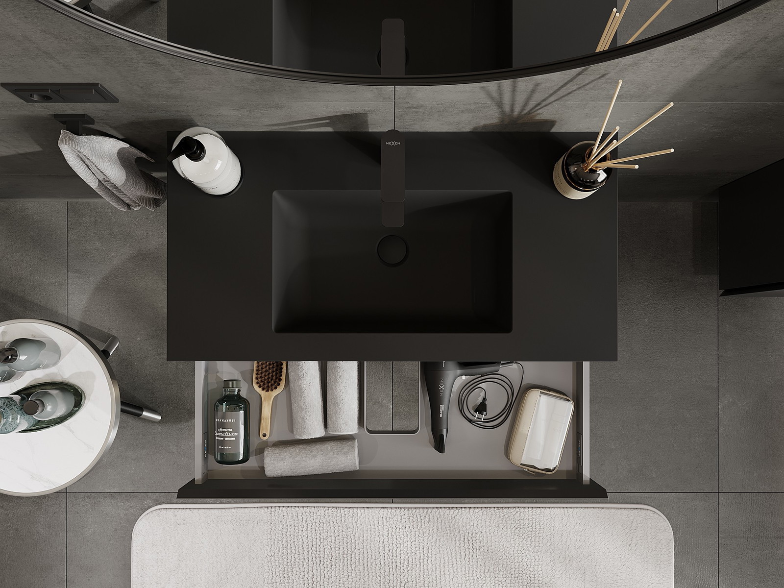 Mexen Orio koupelnová skříňka 90 cm s umyvadlem Otis, 1 zásuvka, černá mat - 91A10-09023-1-BF71-W18M71