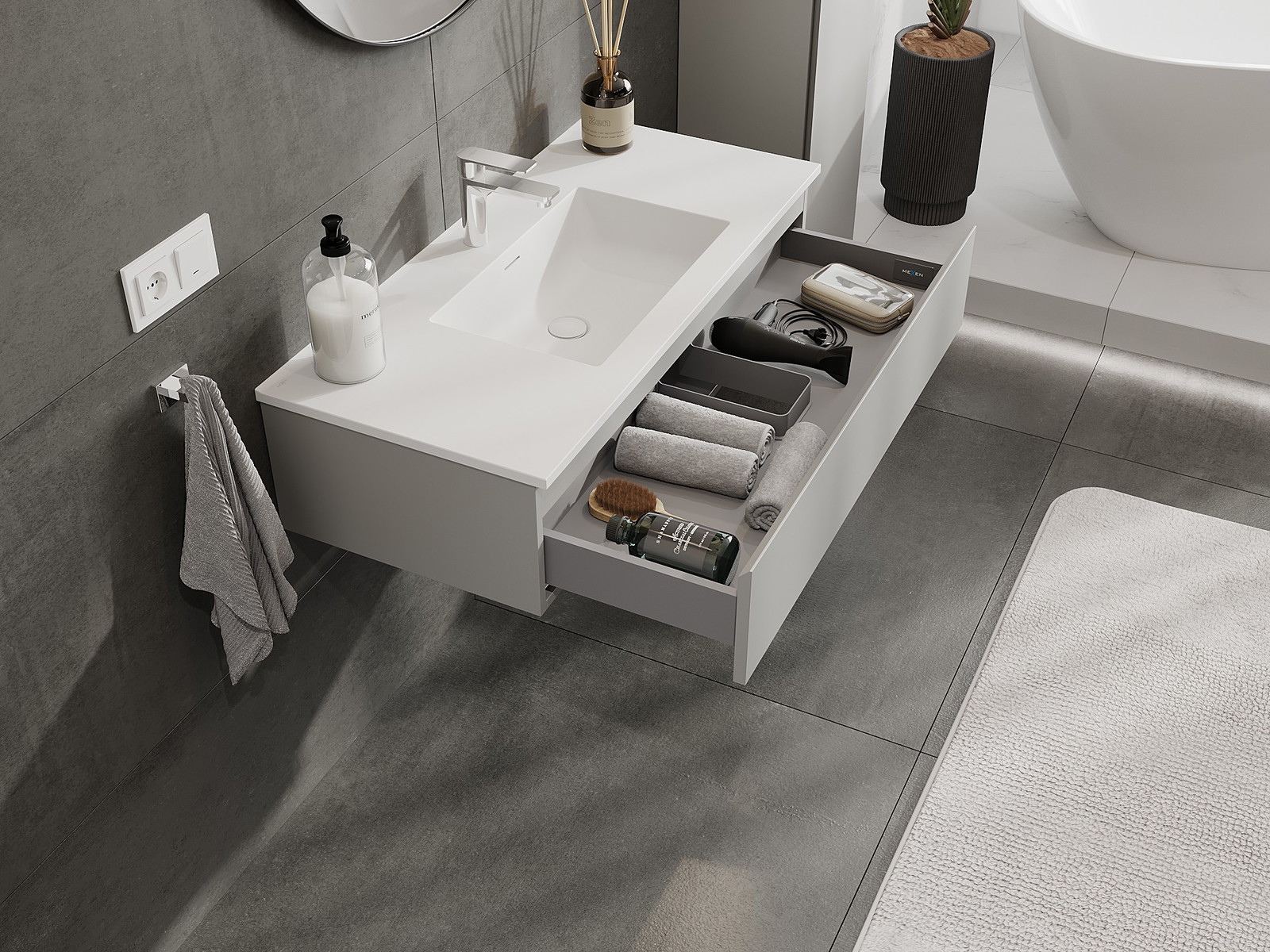 Mexen Orio koupelnová skříňka 100 cm s umyvadlem Otis, 1 zásuvka, šedá mat/bílá mat - 91A10-10023-1-BF62-W18M01