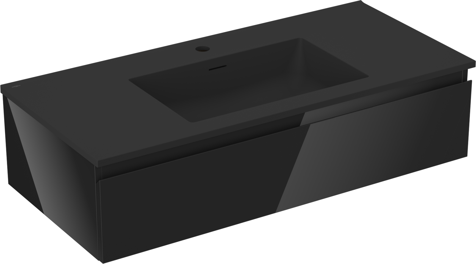 Mexen Orio koupelnová skříňka 100 cm s umyvadlem Otis, 1 zásuvka, černý lesk/černý mat - 91A10-10023-1-BF70-W18M71