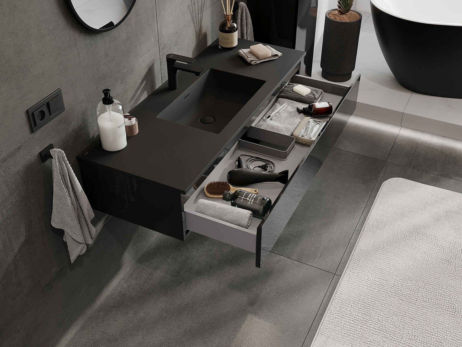 Mexen Orio koupelnová skříňka 120 cm s umyvadlem Otis, 1 zásuvka, černý lesk/černý mat - 91A10-12023-1-BF70-W18M71