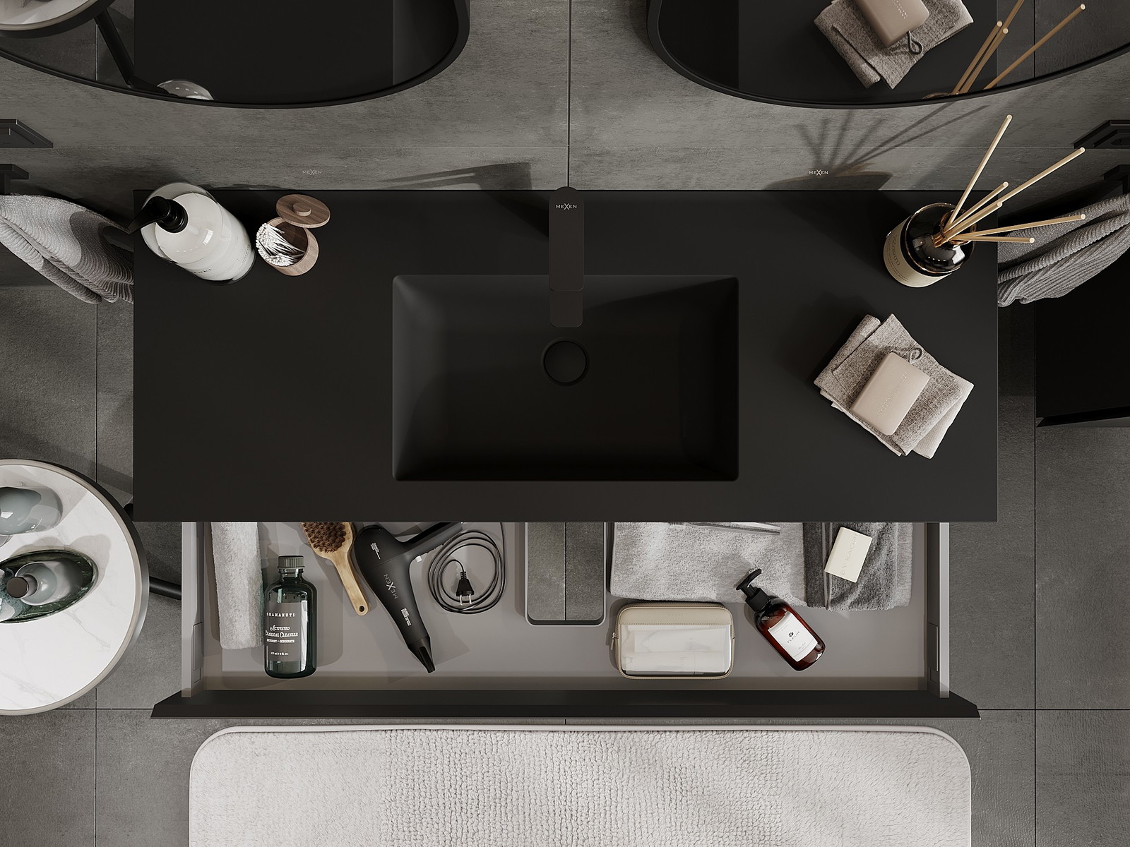 Mexen Orio koupelnová skříňka 120 cm s umyvadlem Otis, 1 zásuvka, černá mat - 91A10-12023-1-BF71-W18M71