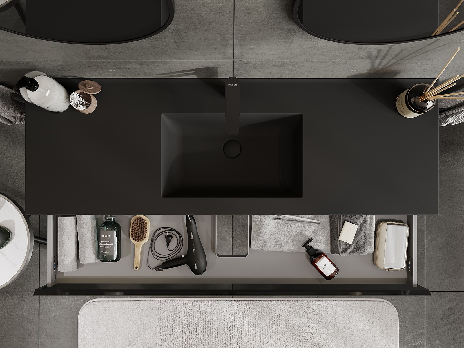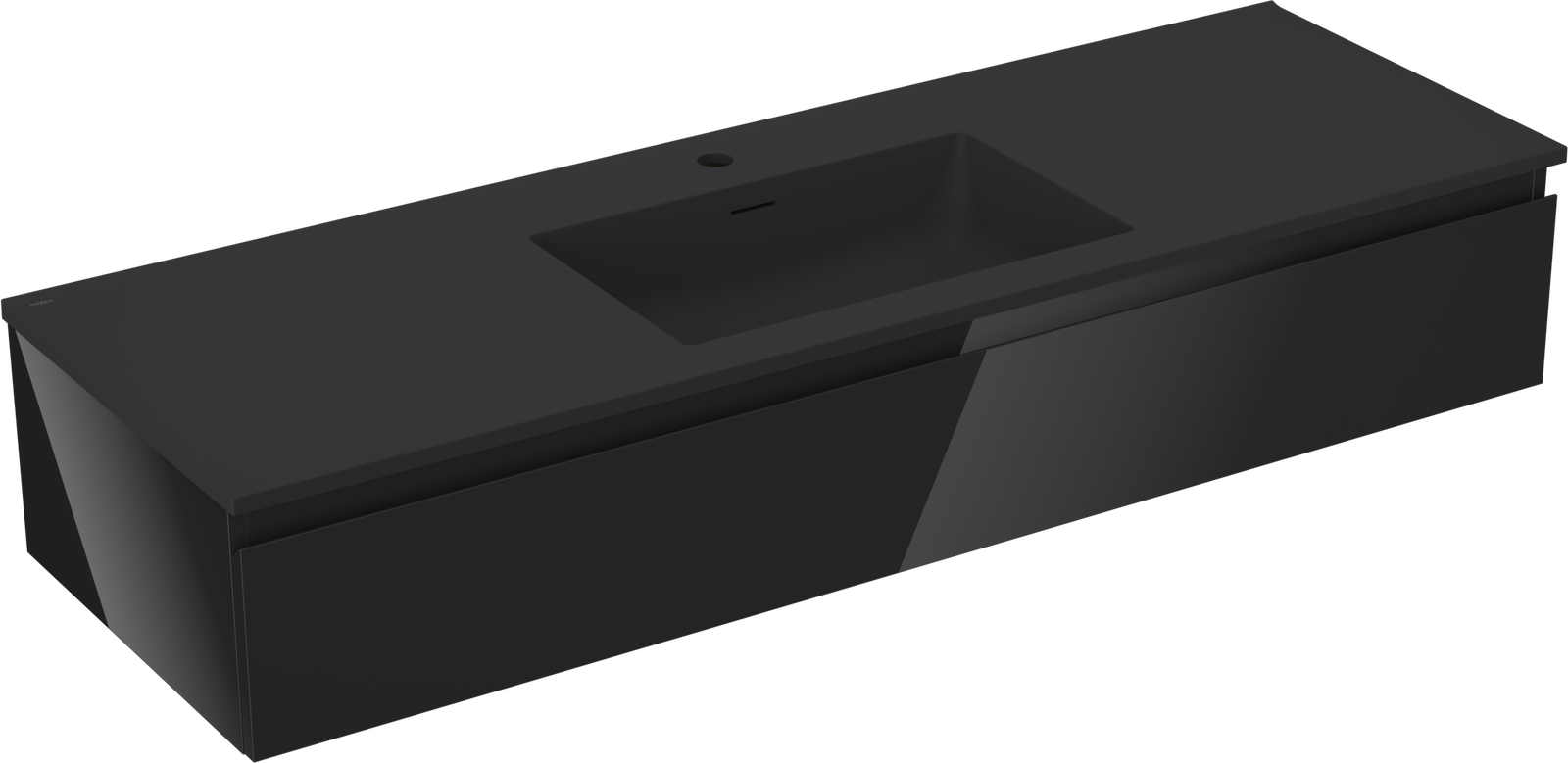 Mexen Orio koupelnová skříňka 140 cm s umyvadlem Otis, 1 zásuvka, černý lesk/černý mat - 91A10-14023-1-BF70-W18M71