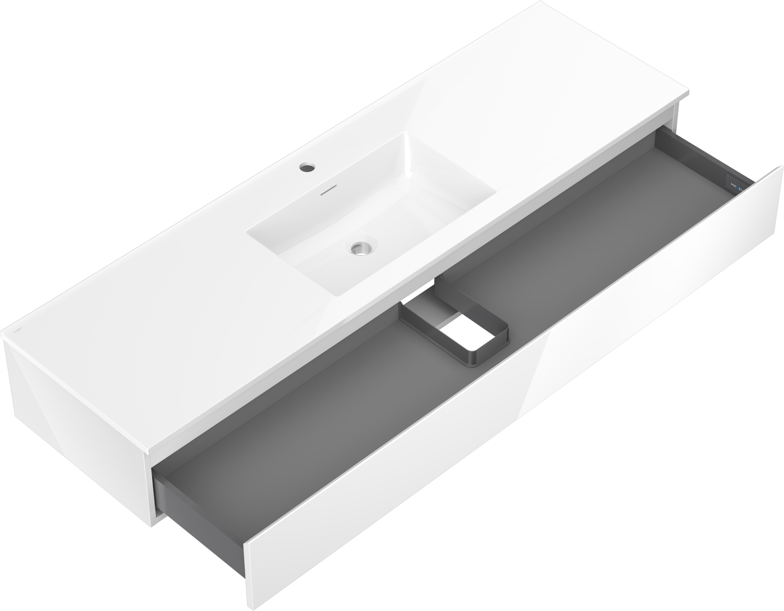 Výřez v zásuvce je navržen tak, aby pojmul sifon, který je nezbytný v instalacích umyvadlových. Díky tomu může být nábytek plně funkčně namontován, aniž by bylo nutné vzdát se prostoru v zásuvce ve prospěch instalace.