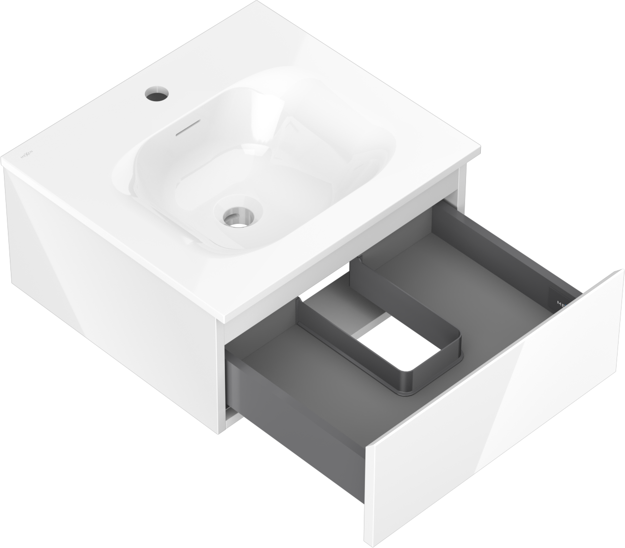 Mexen Orio koupelnová skříňka 50 cm s umyvadlem Vela, 1 zásuvka, bílý lesk - 91A10-05023-1-BF00-W23M00