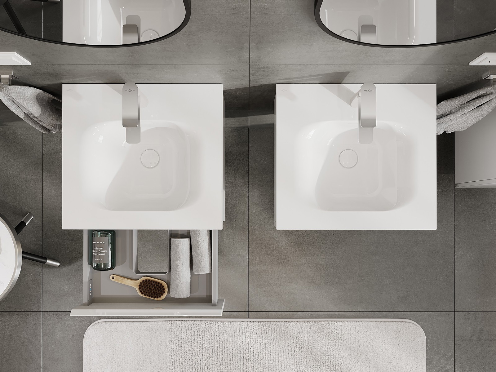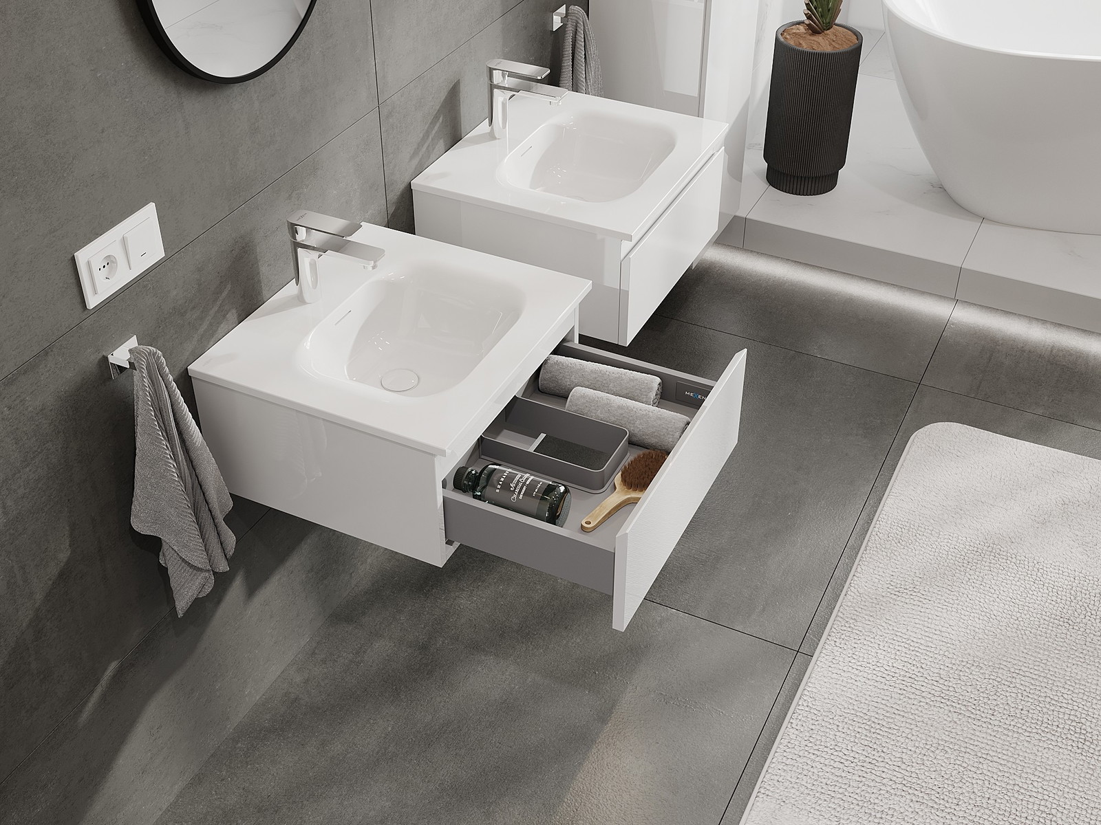 Výřez v zásuvce je navržen tak, aby pojmul sifon, který je nezbytný v instalacích umyvadlových. Díky tomu může být nábytek plně funkčně namontován, aniž by bylo nutné vzdát se prostoru v zásuvce ve prospěch instalace.
