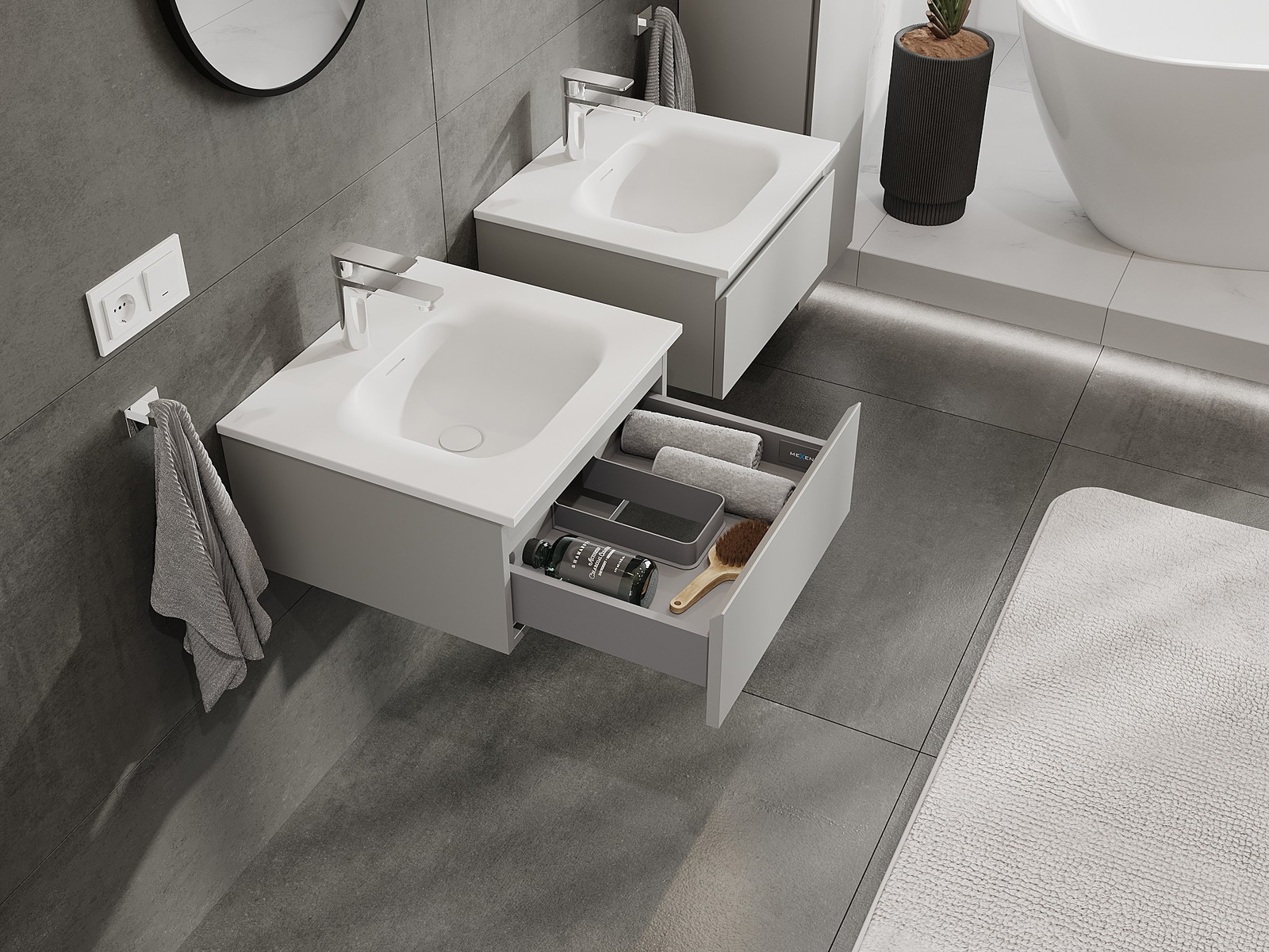 Mexen Orio koupelnová skříňka 50 cm s umyvadlem Vela, 1 zásuvka, šedá mat/bílá mat - 91A10-05023-1-BF62-W23M01