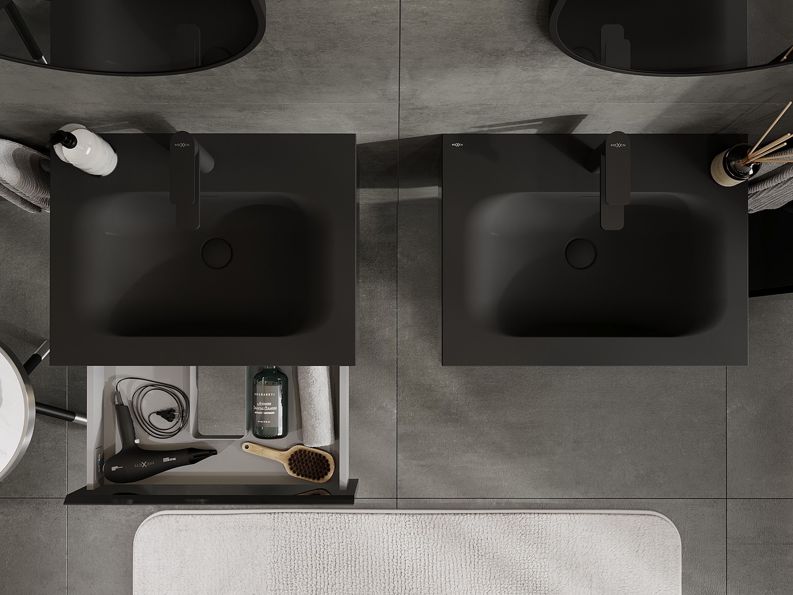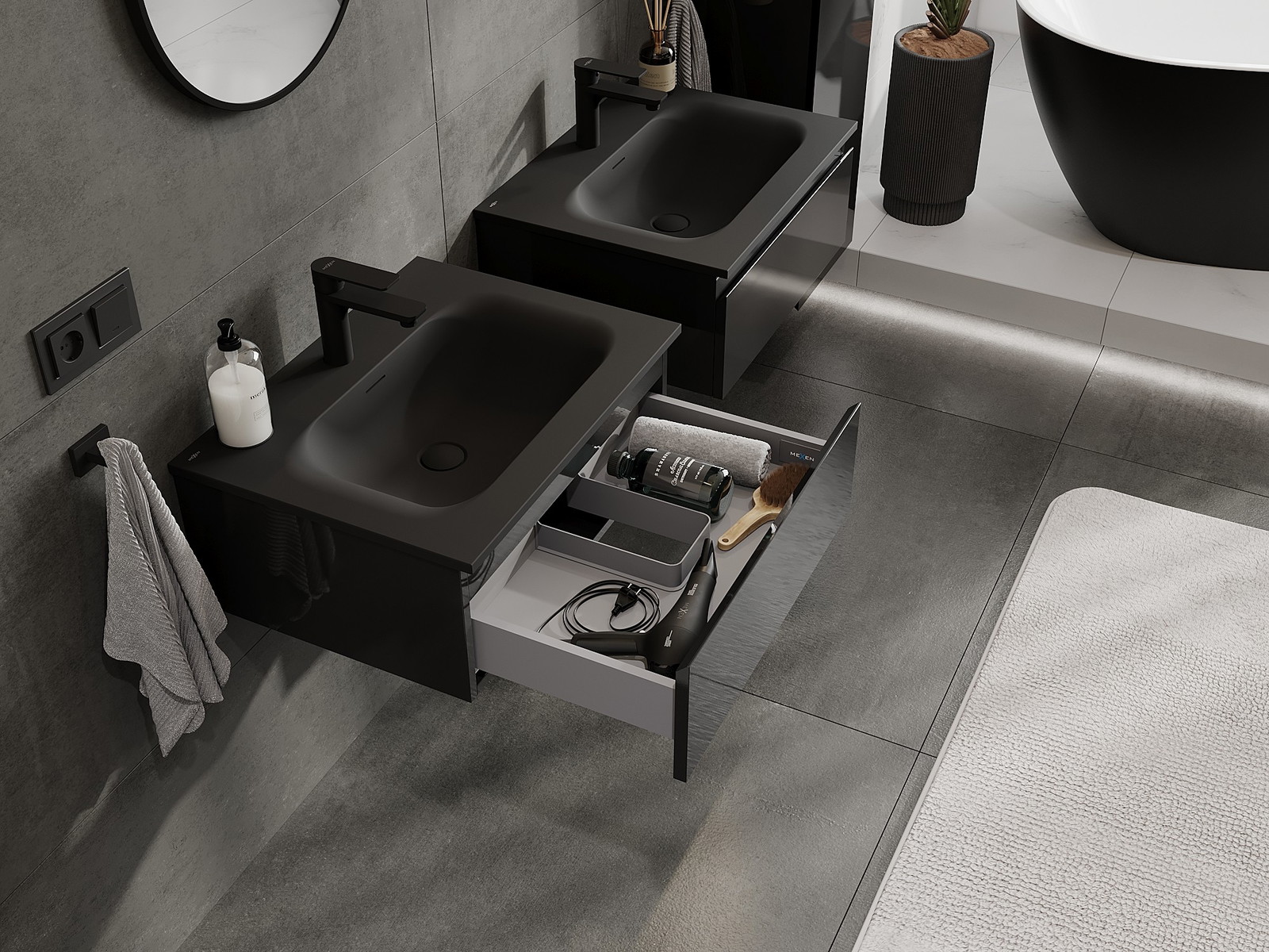 Mexen Orio koupelnová skříňka 60 cm s umyvadlem Vela, 1 zásuvka, černý lesk/černá mat - 91A10-06023-1-BF70-W23M71