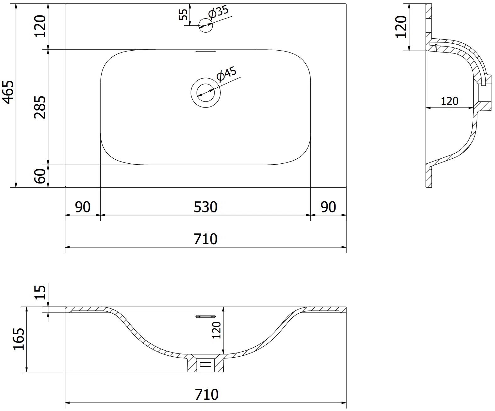 Rozměry umyvadla: