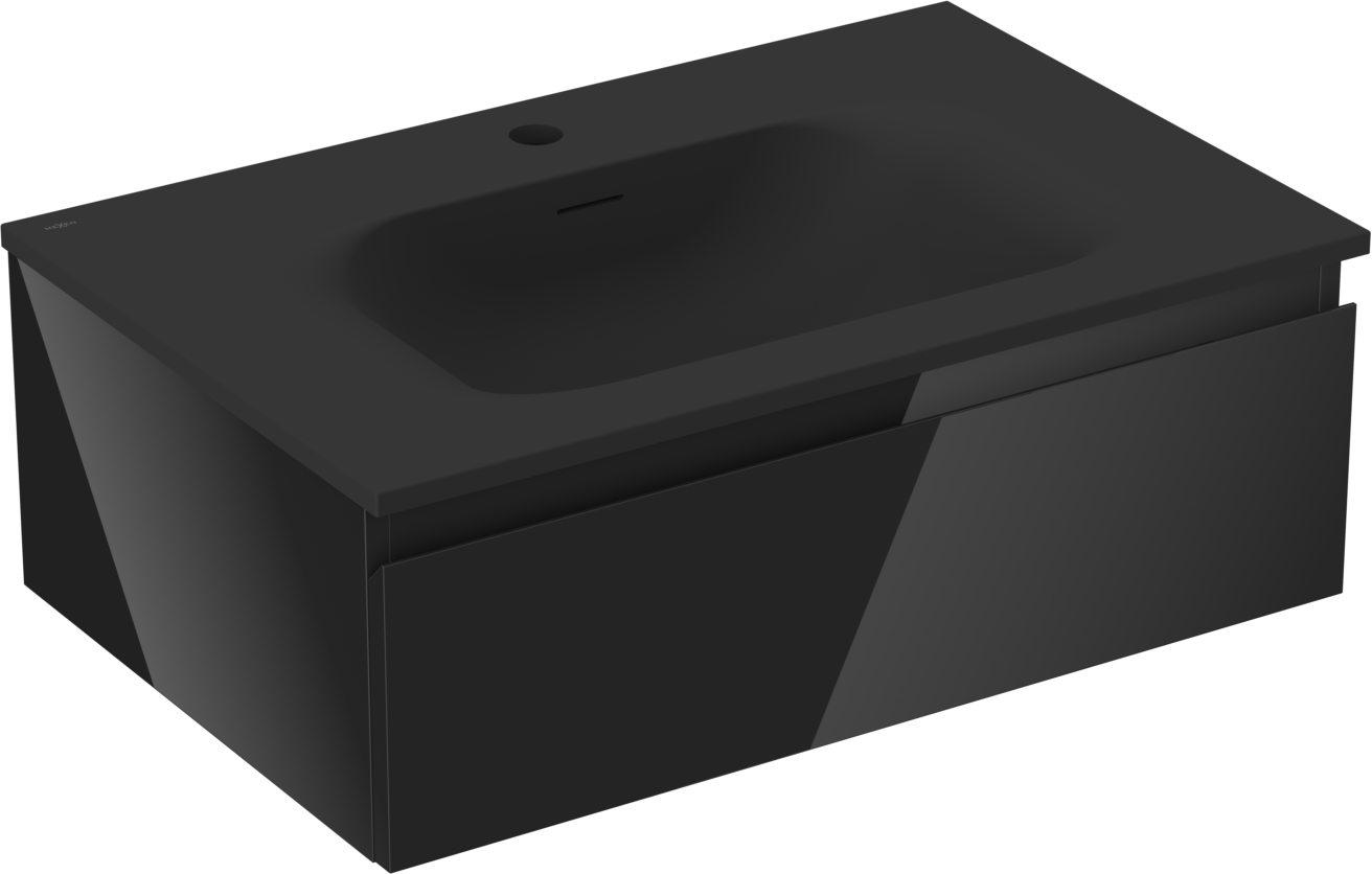 Mexen Orio koupelnová skříňka 70 cm s umyvadlem Vela, 1 zásuvka, černý lesk/černý mat - 91A10-07023-1-BF70-W23M71