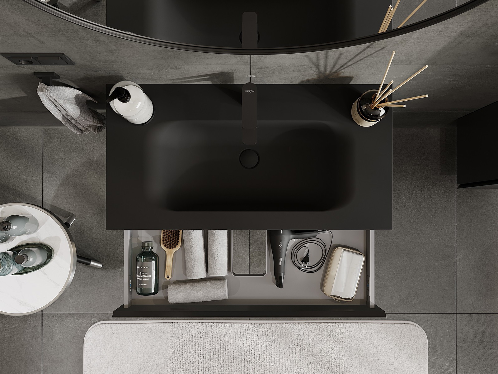 Mexen Orio koupelnová skříňka 90 cm s umyvadlem Vela, 1 zásuvka, černá mat - 91A10-09023-1-BF71-W23M71