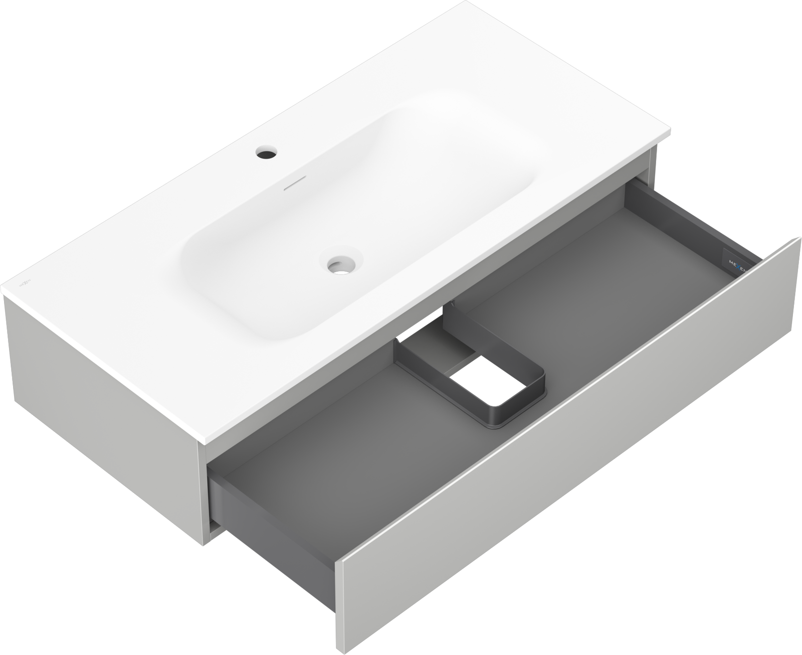 Výřez v zásuvce je navržen tak, aby pojmul sifon, který je nezbytný v instalacích umyvadlových. Díky tomu může být nábytek plně funkčně namontován, aniž by bylo nutné vzdát se prostoru v zásuvce ve prospěch instalace.