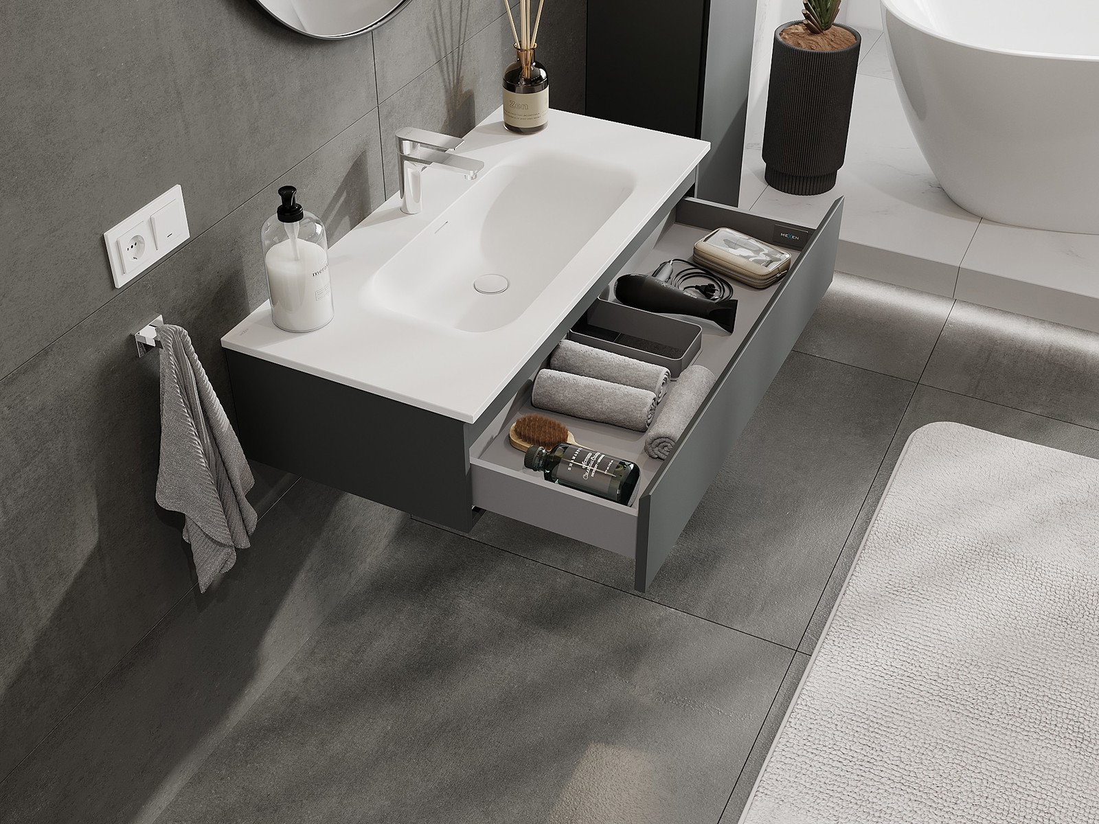 Mexen Orio skříňka do koupelny 100 cm s umyvadlem Vela, 1 zásuvka, grafit mat/bílá mat - 91A10-10023-1-BF66-W23M01