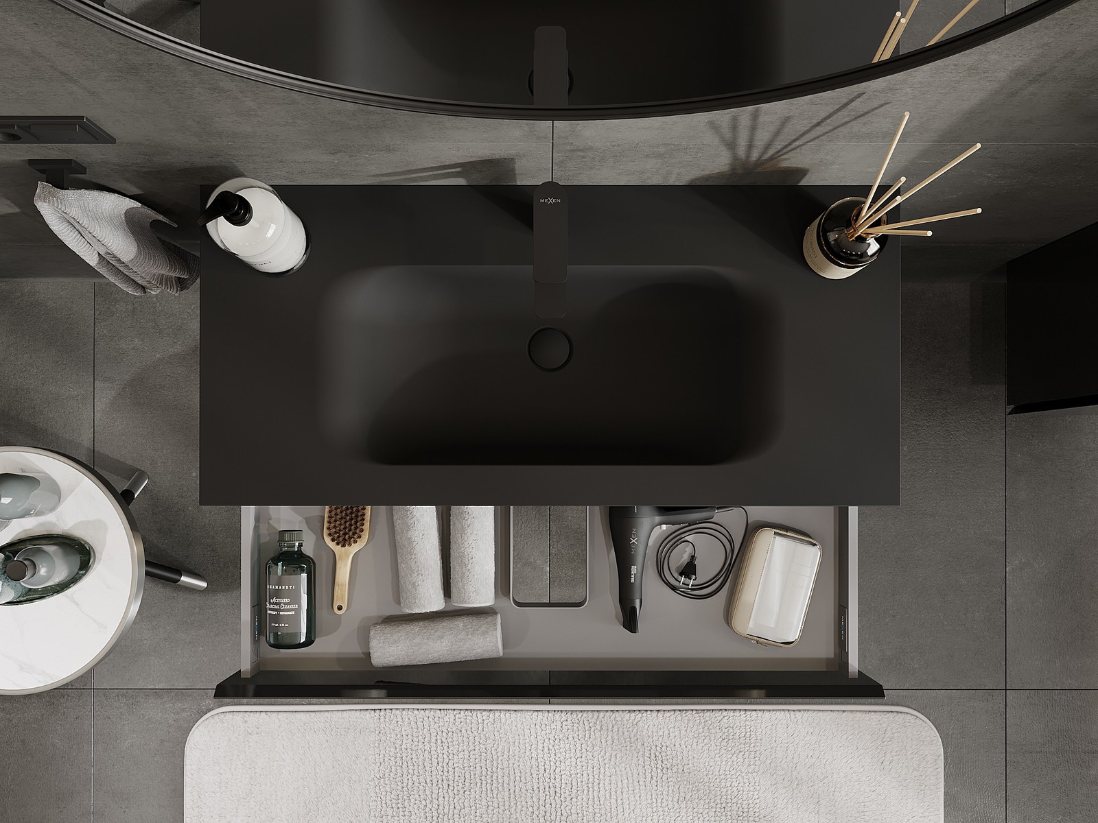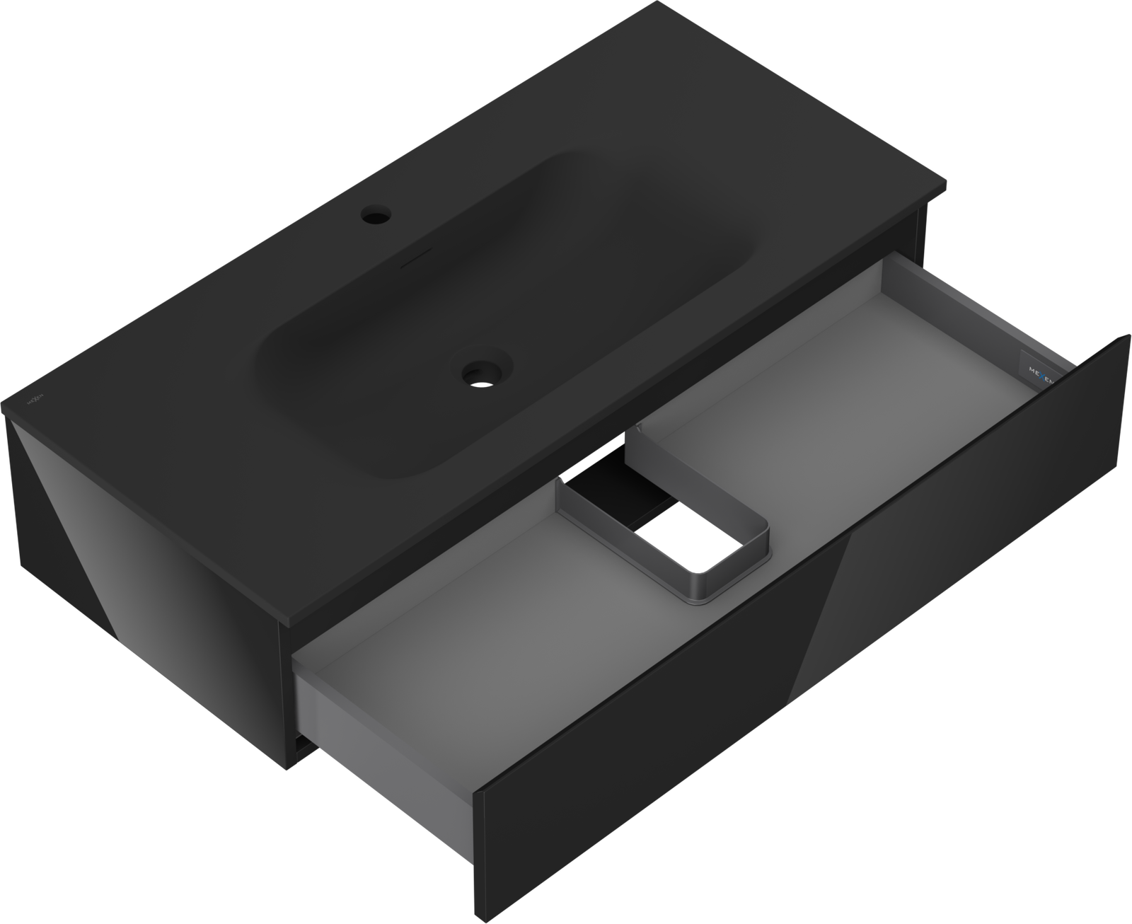 Mexen Orio koupelnová skříňka 100 cm s umyvadlem Vela, 1 zásuvka, černý lesk/černý mat - 91A10-10023-1-BF70-W23M71