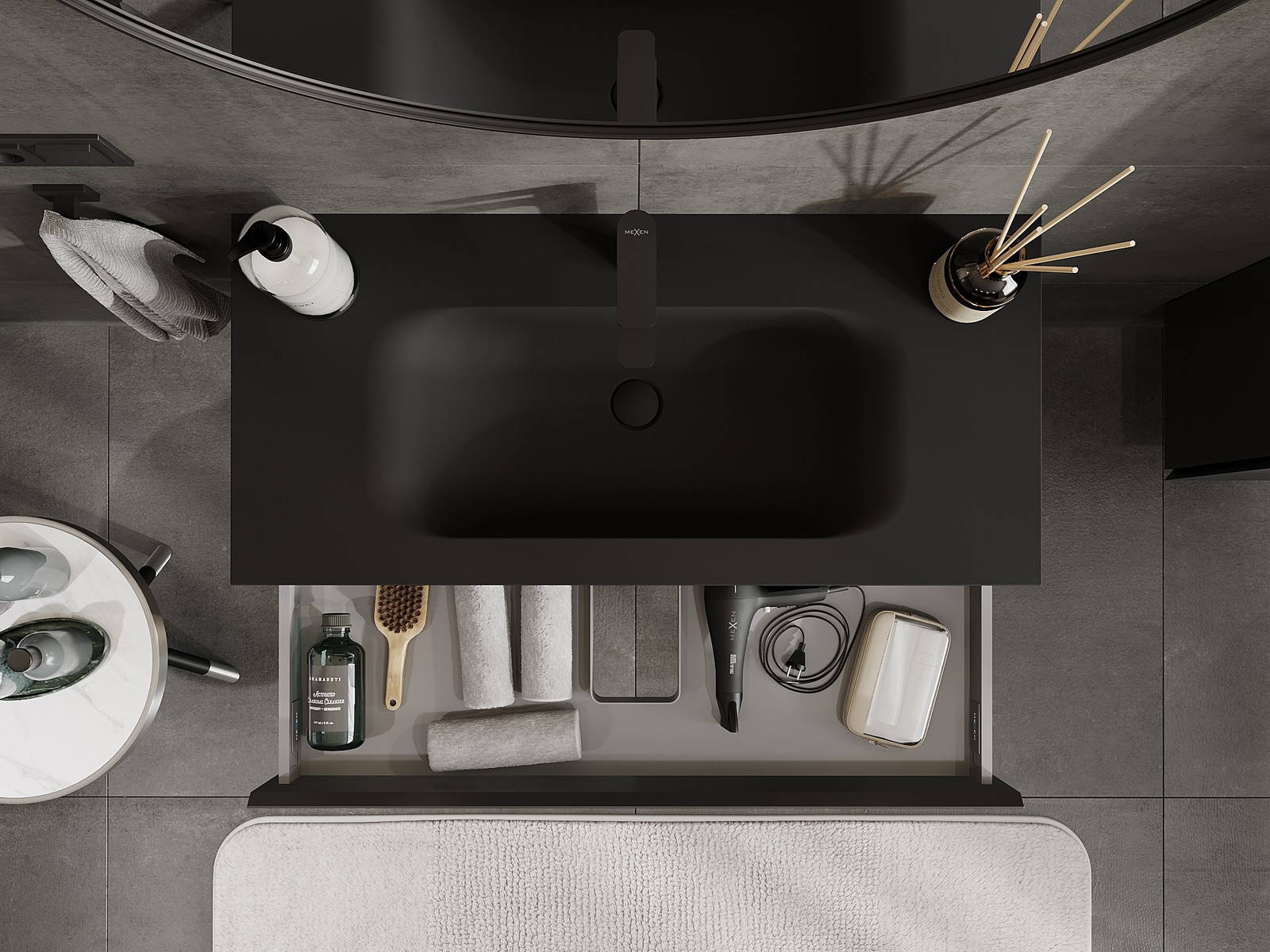 Mexen Orio koupelnová skříňka 100 cm s umyvadlem Vela, 1 zásuvka, černá mat - 91A10-10023-1-BF71-W23M71